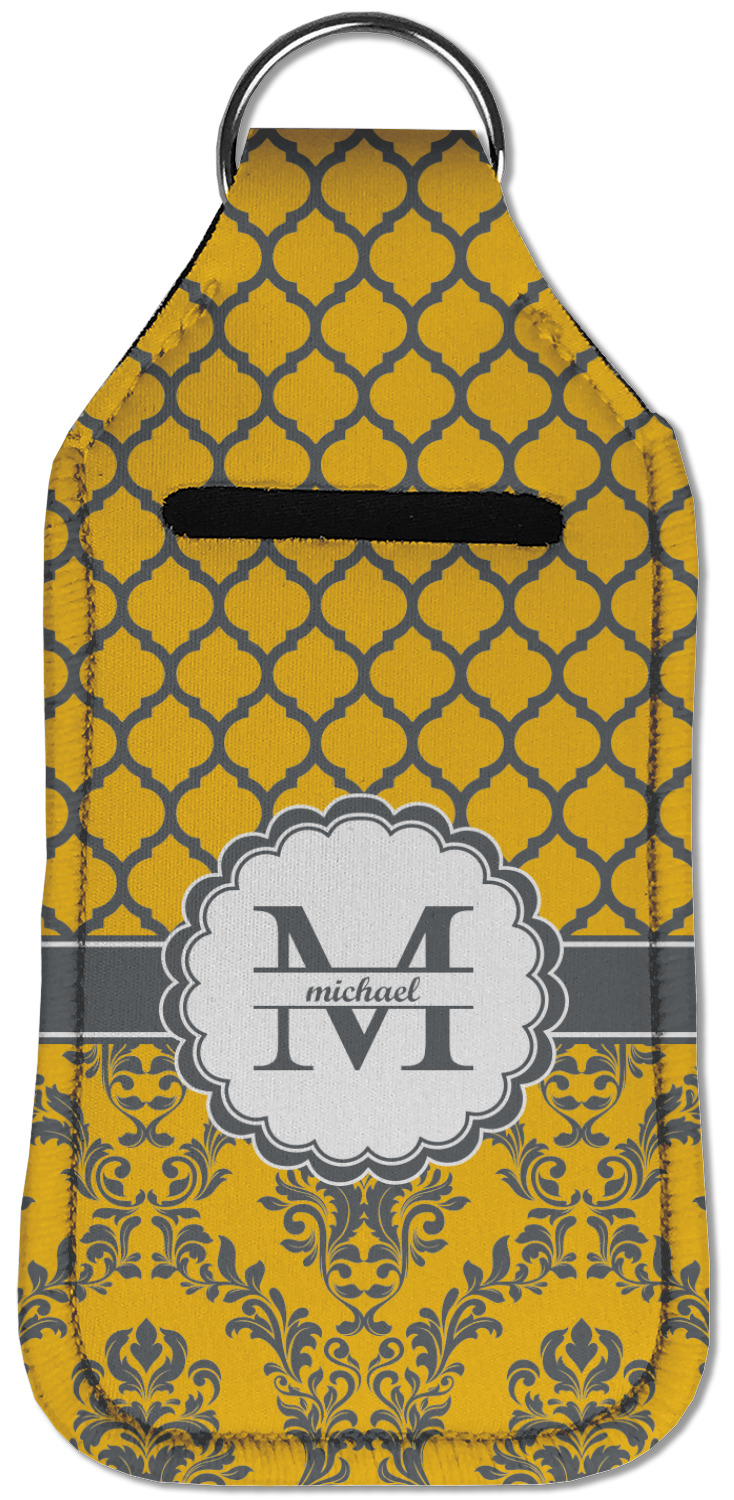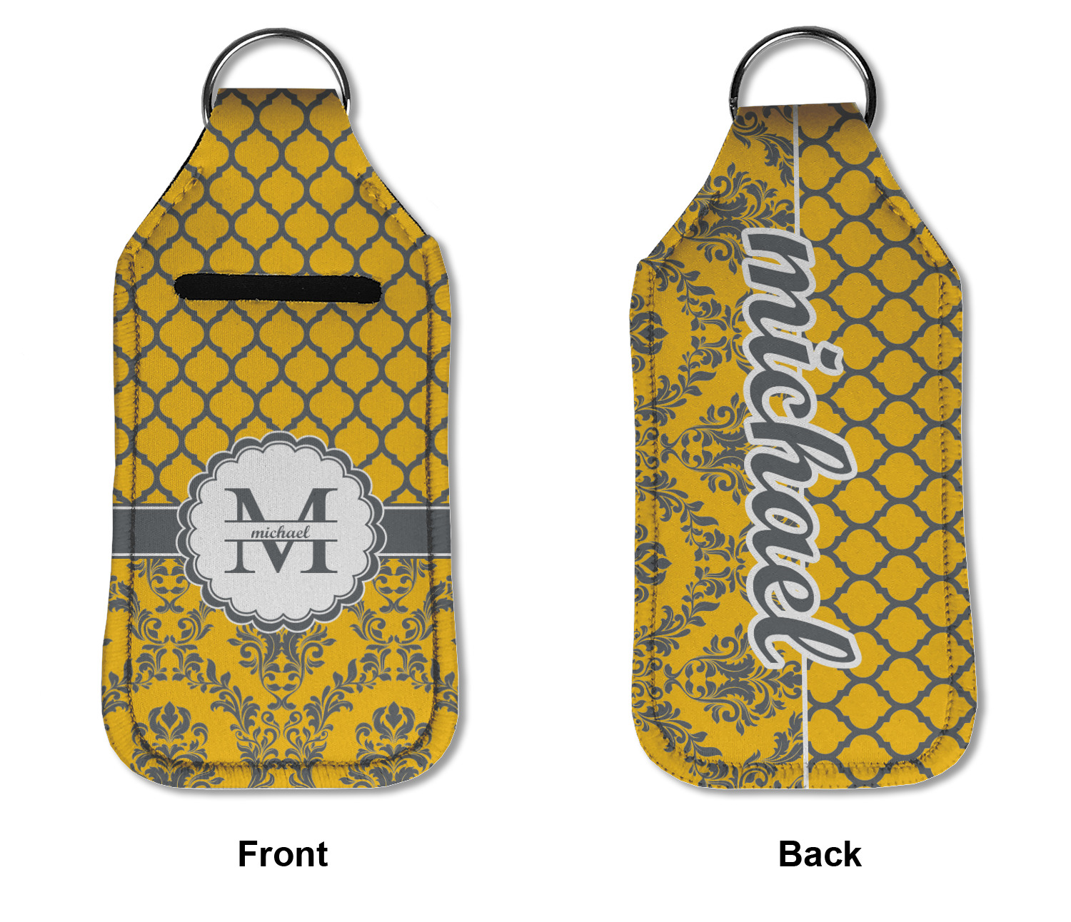Each hand sanitizer holder comes with its own empty travel-sized, refillable hand sanitizer sure to fit snug in your customized sanitizer case! Our hand sanitizer cases are a durable, yet soft neoprene material sure to last any daily activities or travel agenda. Customize and personalize a hand sanitizer bottle holder with one of our two sizes - small (4.25" x 2.25") or large (5.5" x 2.5"). Each travel sanitizer holder comes with a keyring for attachment on bags, keys, or more!