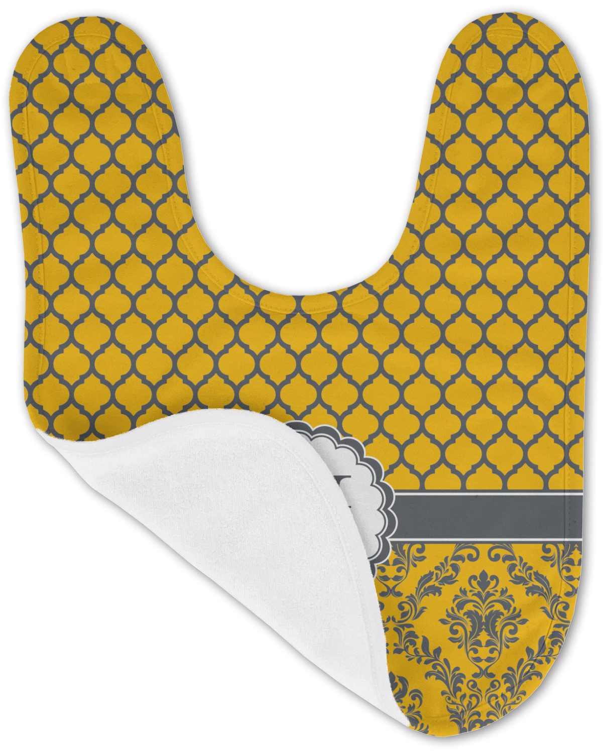 Made of soft polyester, each customizable bib hugs comfortably around the neck to catch every drip and drool. Each bib design is printed with baby-safe ink and finished with a secure stitch pattern and velcro clasp. We carry two customizable bib styles -Microfiber Velour and Jersey Knit.