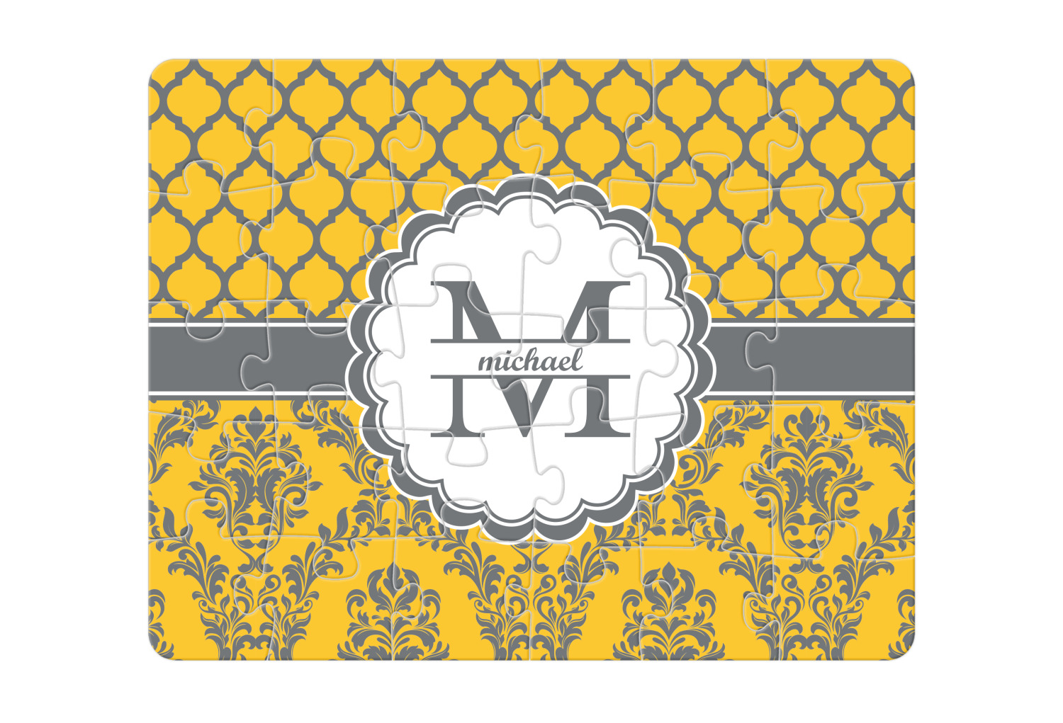 Depending on the look you are trying to achieve, you can add; a thematic pattern or background, with a photo in a frame and text or personalization to your puzzle. Basically if you can imagine it, you can design it!