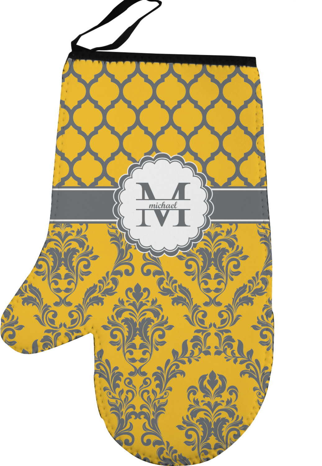 Our oven mitt gloves are made from a durable neoprene and feature a textured, rubberized surface on the palm's side for an easy grip. A strong stitch connects the neoprene and rubber, increasing the durability of this mitt. These oven gloves are spacious, and can accommodate both small and large hands. A thin, black loop is attached to the mitt's top, which can be used to hang and store the mitt. Your customization is displayed across the entire front of the neoprene surface. We sell both left and right hand models of these, separately.
