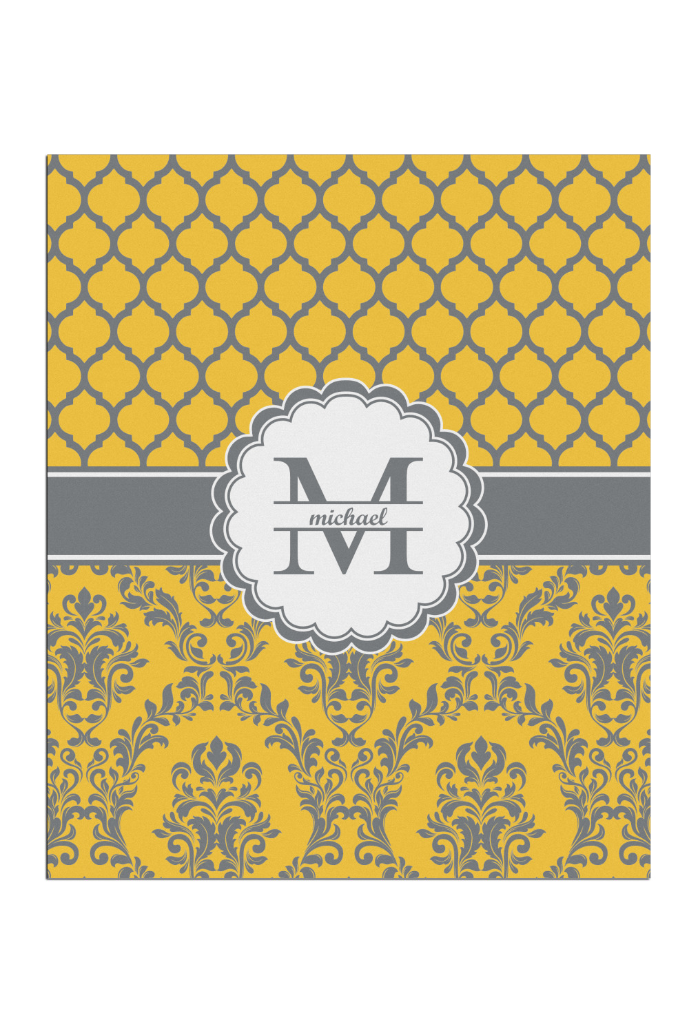 What a beautiful color combination. Introducing a gorgeous muted gold / yellow paired with a heather dove grey. The top of the design is inspired by a classic Moroccan pattern. Using yellow outlined in grey is a very unique color combination on a traditional design. The bottom half of the design stays true to tradition with a beautiful worldly damask pattern. Unique, traditional and worldly come together to form a very rich and regal look. A wide band of dove grey outlined in white bring both patterns together.