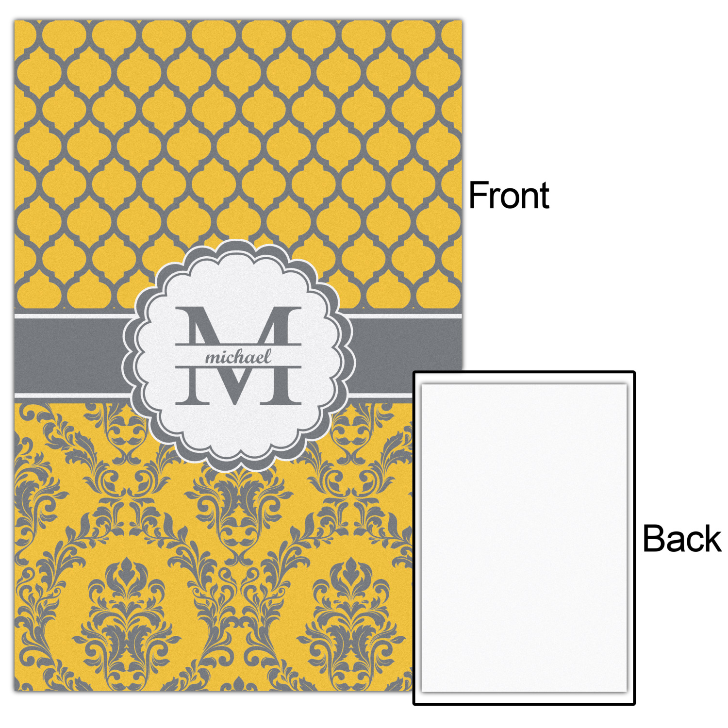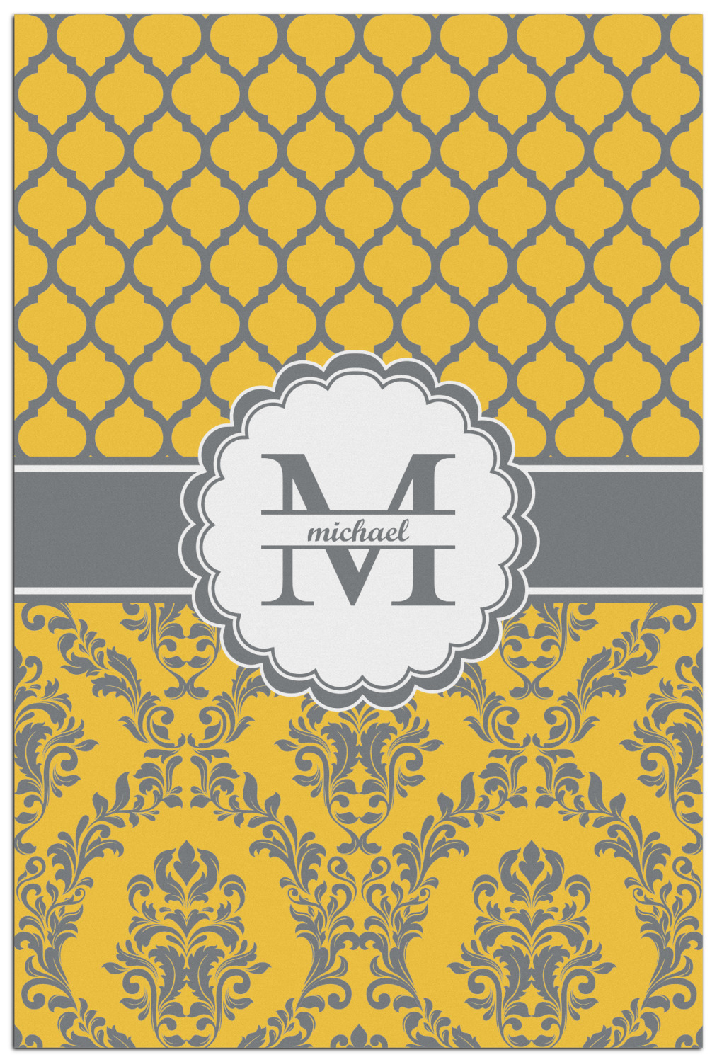 What a beautiful color combination. Introducing a gorgeous muted gold / yellow paired with a heather dove grey. The top of the design is inspired by a classic Moroccan pattern. Using yellow outlined in grey is a very unique color combination on a traditional design. The bottom half of the design stays true to tradition with a beautiful worldly damask pattern. Unique, traditional and worldly come together to form a very rich and regal look. A wide band of dove grey outlined in white bring both patterns together.