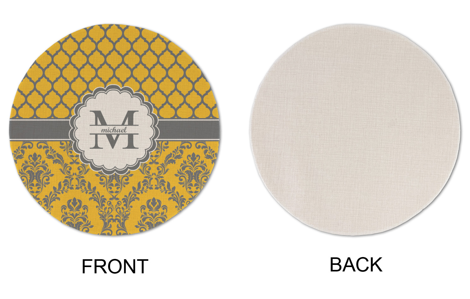 What a beautiful color combination. Introducing a gorgeous muted gold / yellow paired with a heather dove grey. The top of the design is inspired by a classic Moroccan pattern. Using yellow outlined in grey is a very unique color combination on a traditional design. The bottom half of the design stays true to tradition with a beautiful worldly damask pattern. Unique, traditional and worldly come together to form a very rich and regal look. A wide band of dove grey outlined in white bring both patterns together.
