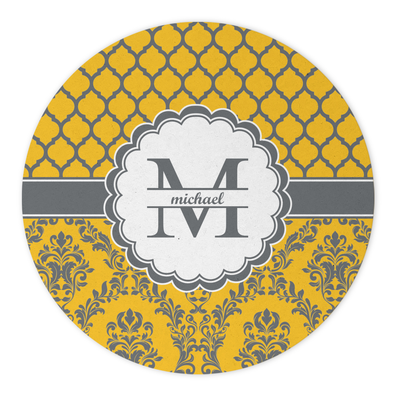 What a beautiful color combination. Introducing a gorgeous muted gold / yellow paired with a heather dove grey. The top of the design is inspired by a classic Moroccan pattern. Using yellow outlined in grey is a very unique color combination on a traditional design. The bottom half of the design stays true to tradition with a beautiful worldly damask pattern. Unique, traditional and worldly come together to form a very rich and regal look. A wide band of dove grey outlined in white bring both patterns together.