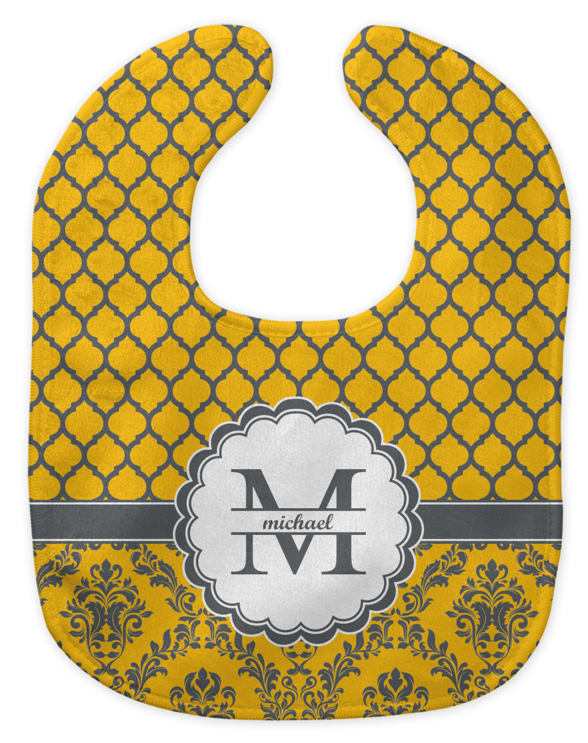 Made of soft polyester, each customizable bib hugs comfortably around the neck to catch every drip and drool. Each bib design is printed with baby-safe ink and finished with a secure stitch pattern and velcro clasp. We carry two customizable bib styles -Microfiber Velour and Jersey Knit.