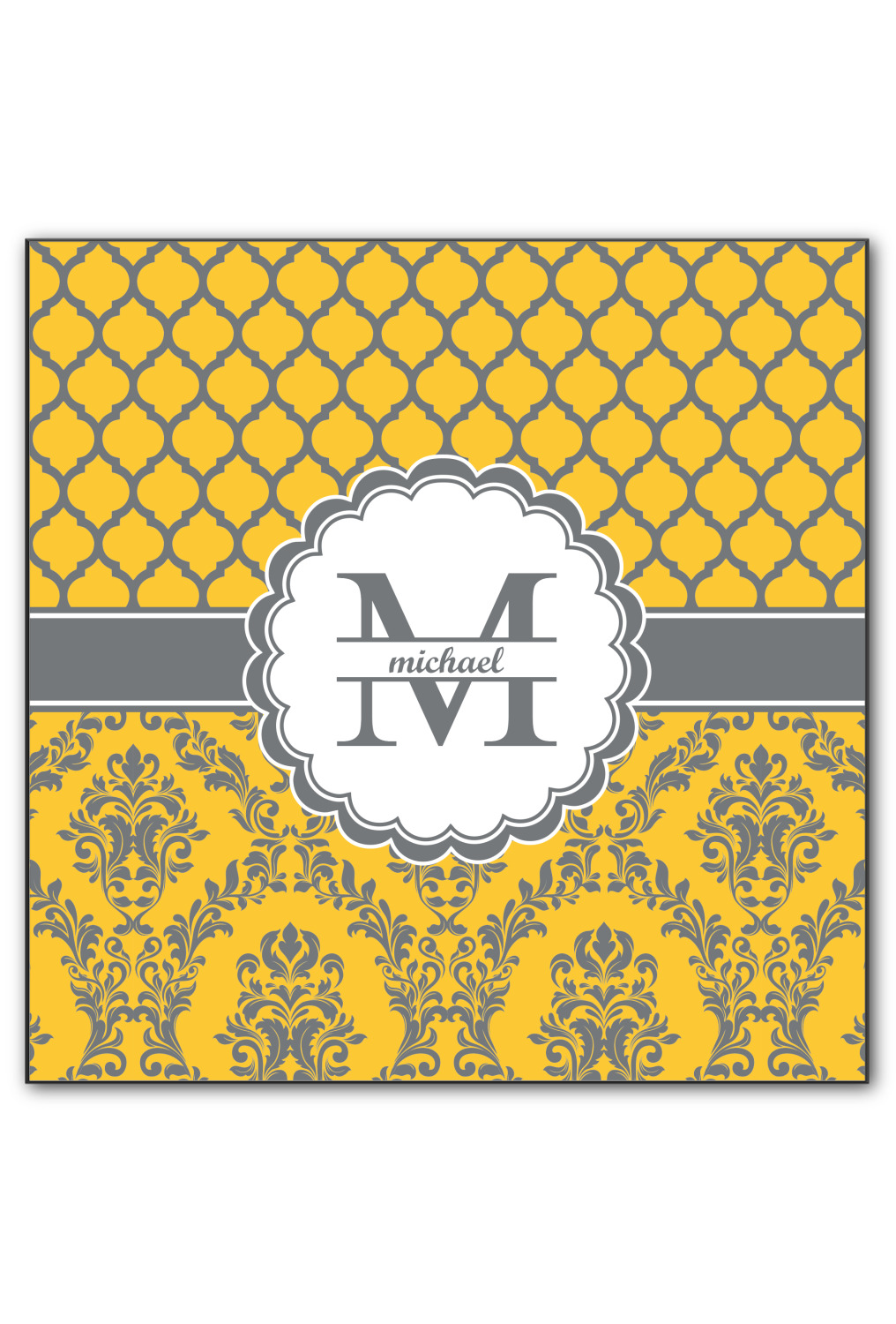 What a beautiful color combination. Introducing a gorgeous muted gold / yellow paired with a heather dove grey. The top of the design is inspired by a classic Moroccan pattern. Using yellow outlined in grey is a very unique color combination on a traditional design. The bottom half of the design stays true to tradition with a beautiful worldly damask pattern. Unique, traditional and worldly come together to form a very rich and regal look. A wide band of dove grey outlined in white bring both patterns together.