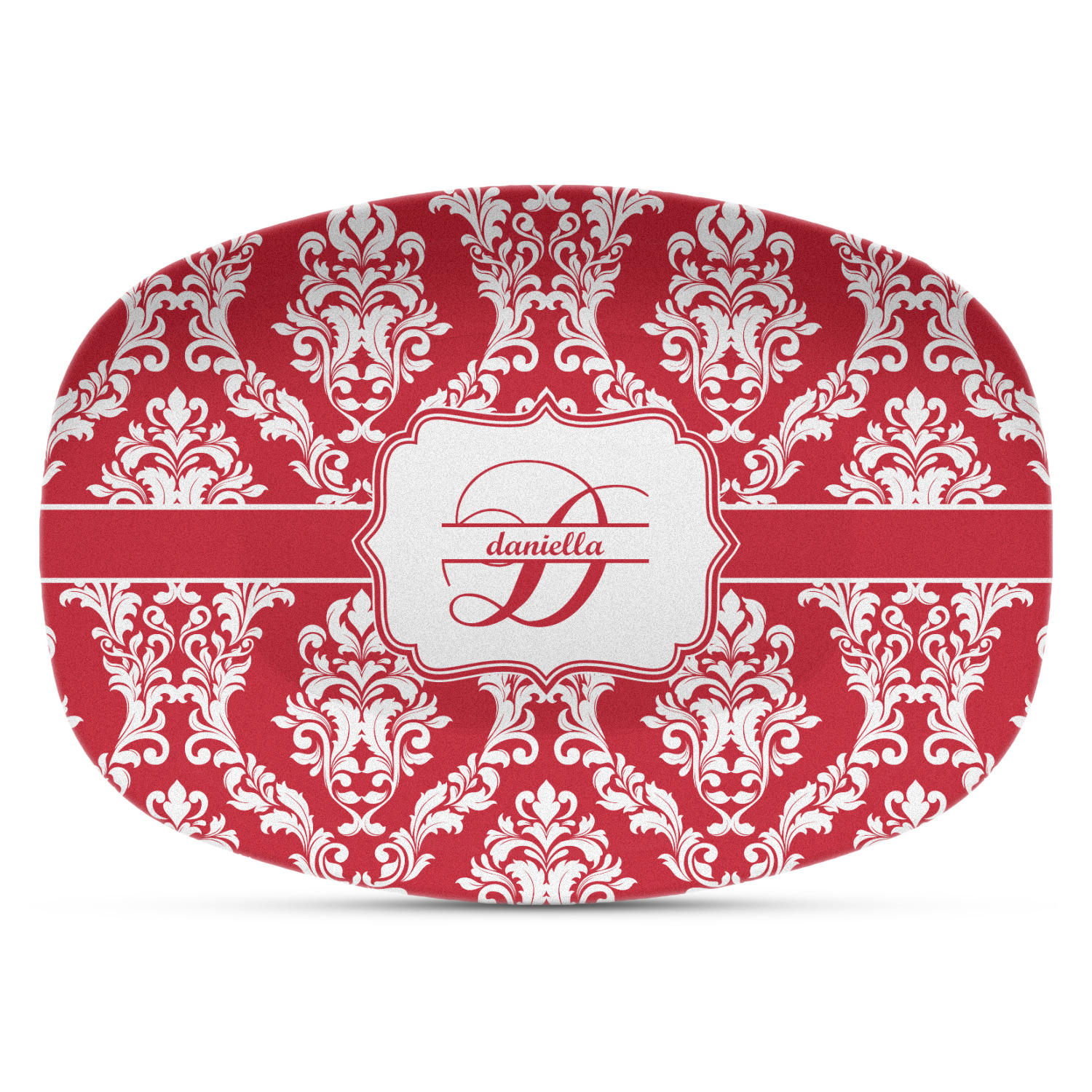 These serving platters are made from a composite, thermo-set, polymer plastic that gives it the versatility, durability, and weight of a melamine platter, without any of the downsides of melamine. These personalized platters, can withstand temperatures up to 250 degrees Fahrenheit, for up to 60 minutes. No harmful chemicals, such as BPA, formaldehyde, and DEHPs were used in the manufacturing of this product. This large serving platter measures at 14" x 10.25", and is spacious enough to hold any of your appetizers or bite-sized desserts. The platter exhibits your personalization across the entirety of its front.