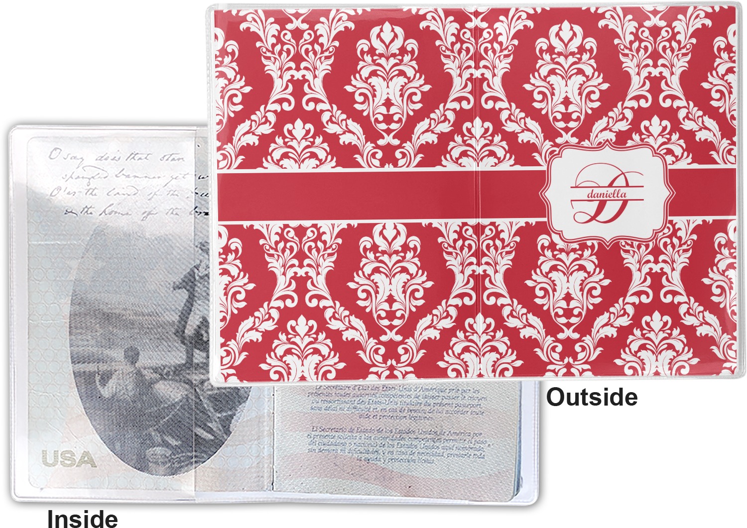 This cover is made of a sturdy clear vinyl with a personalized vinyl insert inside. There is a large and a small pocket on either side to hold the covers of your passport easily and firmly. The passport holder is approximately 7.5" x 5.25", the perfect size to snugly fit your passport. This slim cover is the perfect way to protect your passport without being one more bulky item you have to carry.