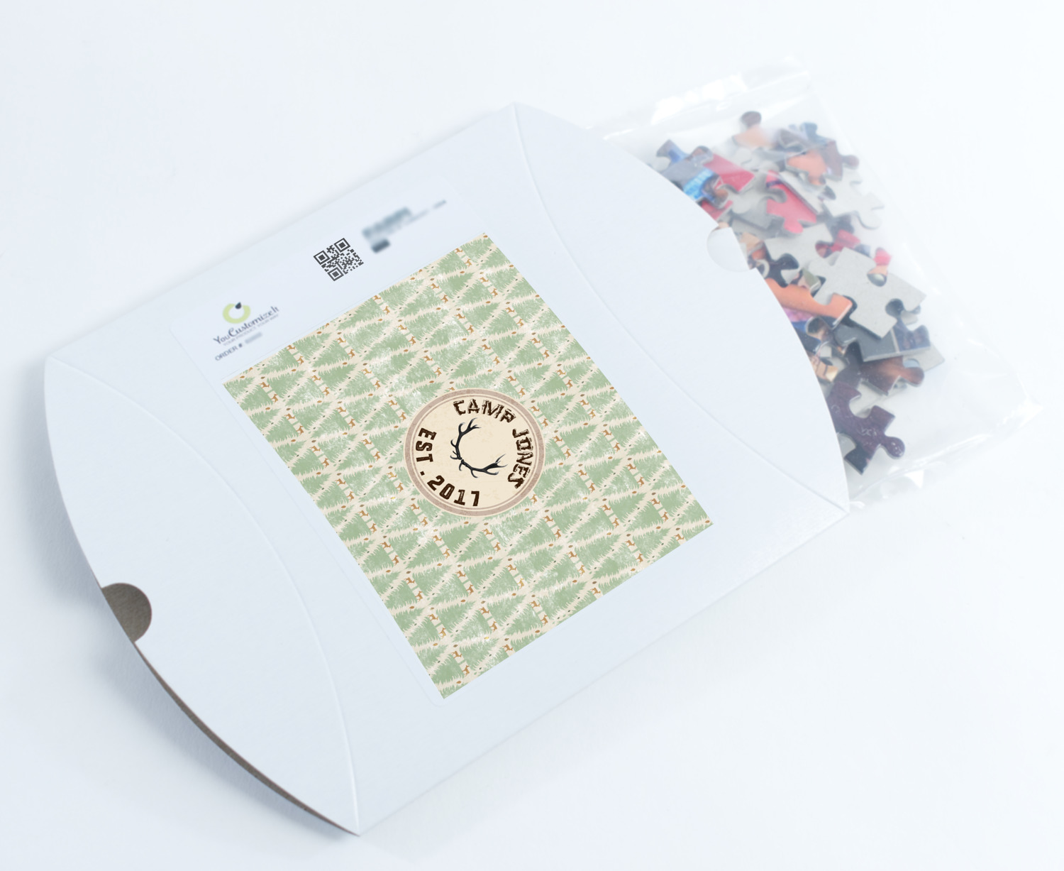 You can also upload your logo or art that you or your kids drew. To create more challenging jigsaw puzzles, you can create a pattern from with your logo or artwork. You can also add other elements such as text or personalization.