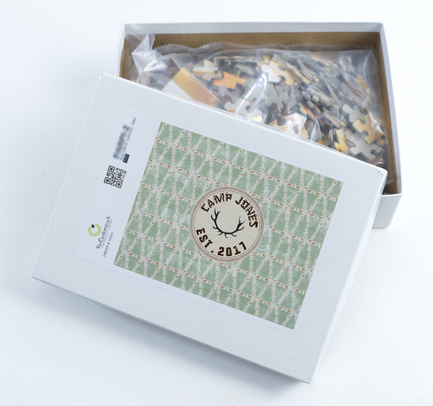 You can also upload your logo or art that you or your kids drew. To create more challenging jigsaw puzzles, you can create a pattern from with your logo or artwork. You can also add other elements such as text or personalization.