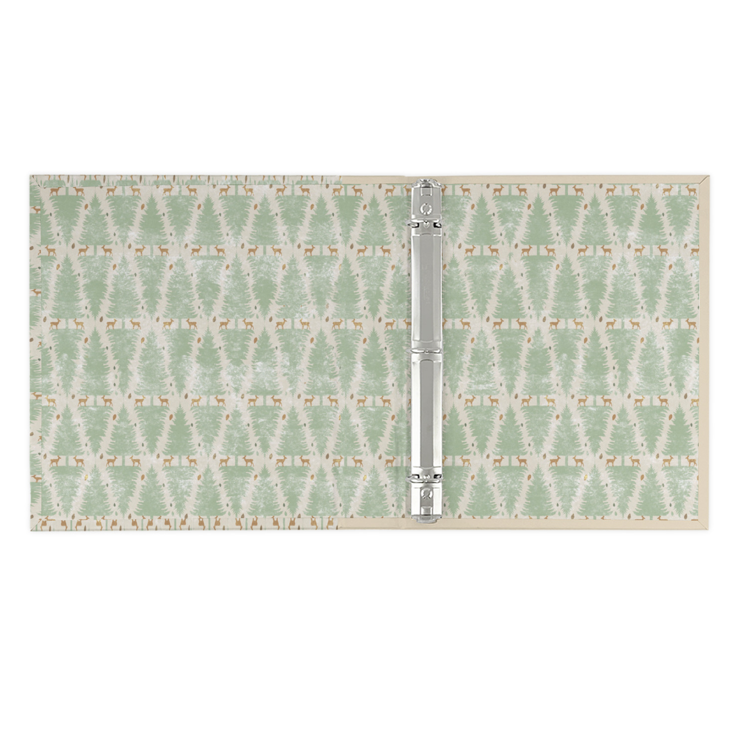 This design has a very calm color palette with toned down greens and tans. On the main pattern you will find adorable little deer in between rows of pines.