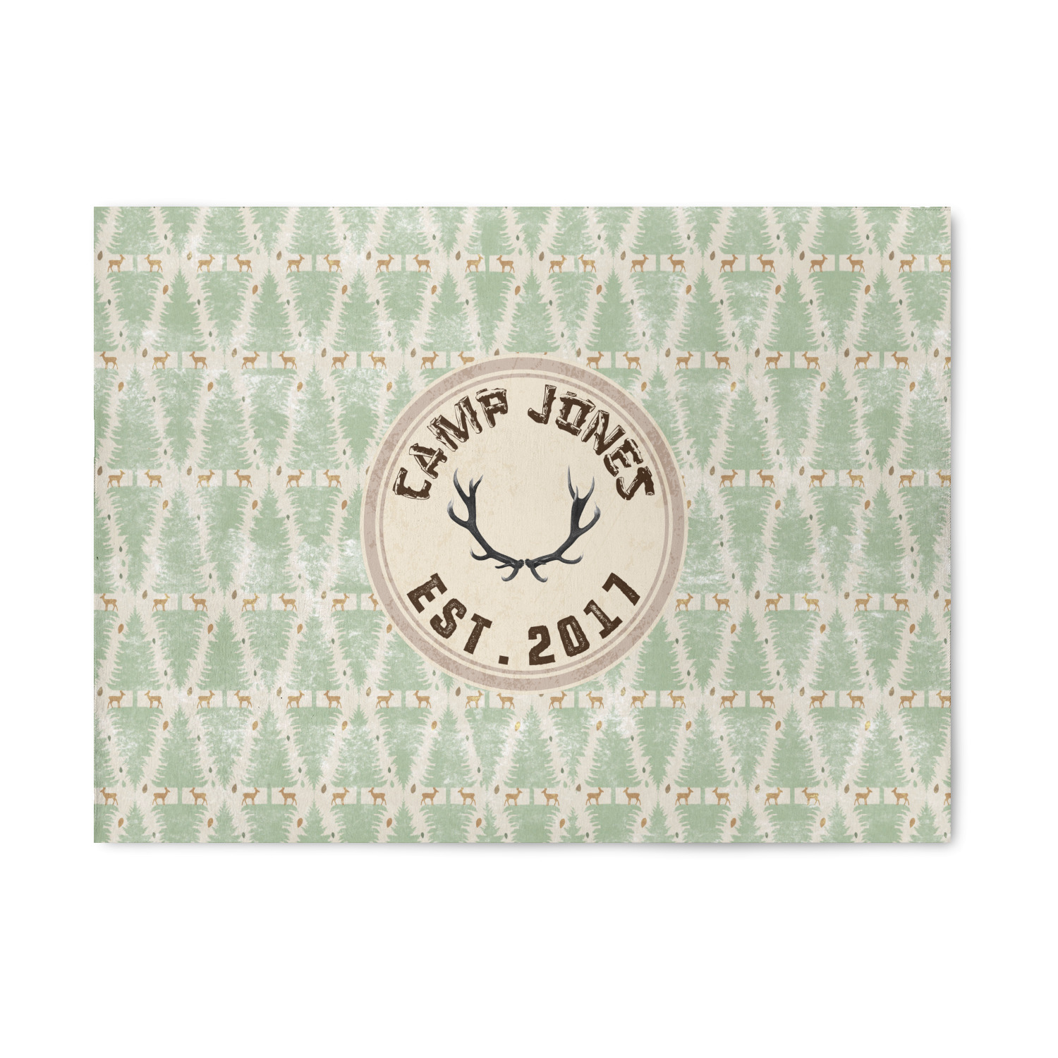This design has a very calm color palette with toned down greens and tans. On the main pattern you will find adorable little deer in between rows of pines.