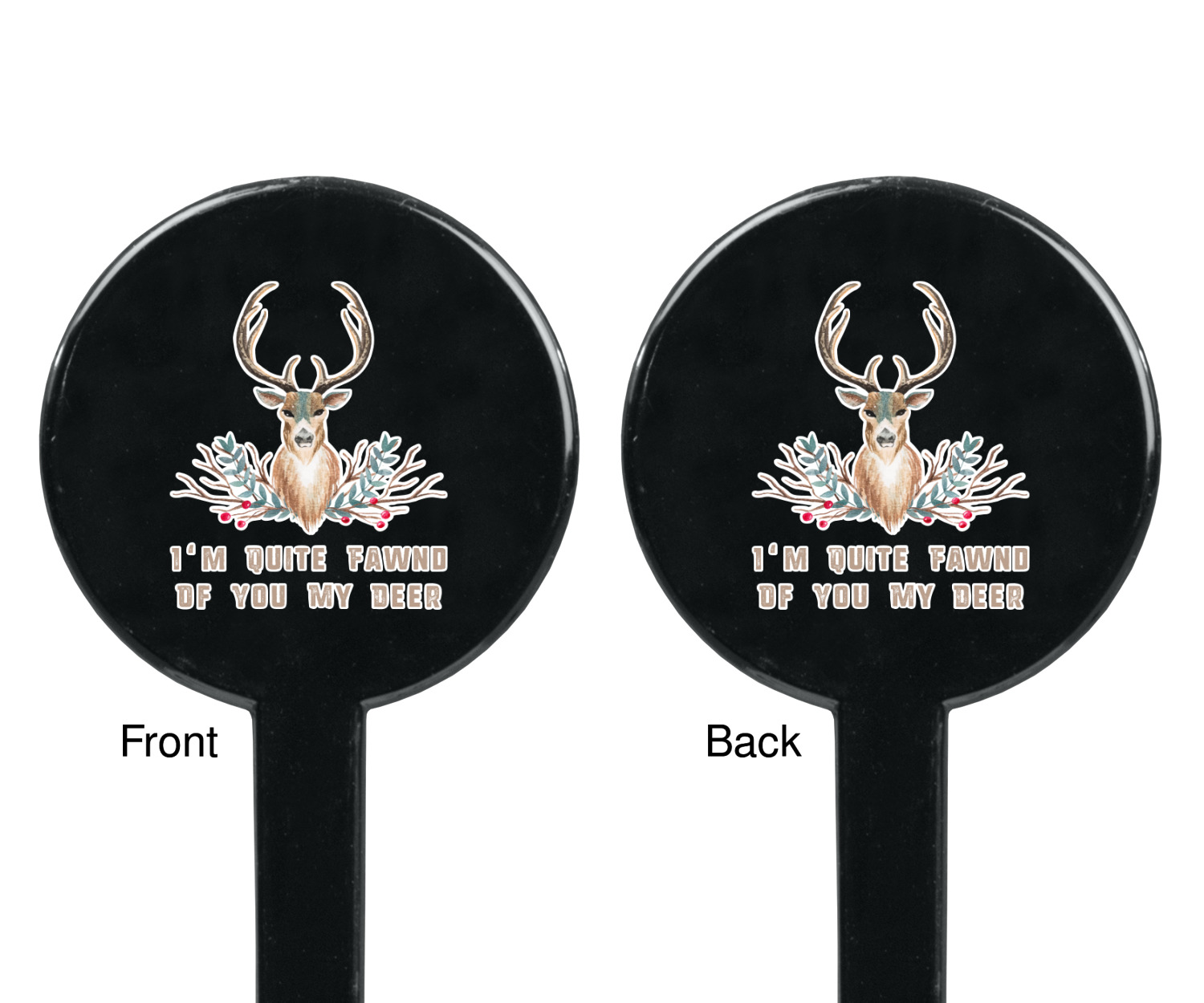 Place the name of your camp in the design or use the saying to let a loved one know that you are "fawnd" of them. Whether for a friend's lodge or for your own, this design really brightens any kind of rustic interior.