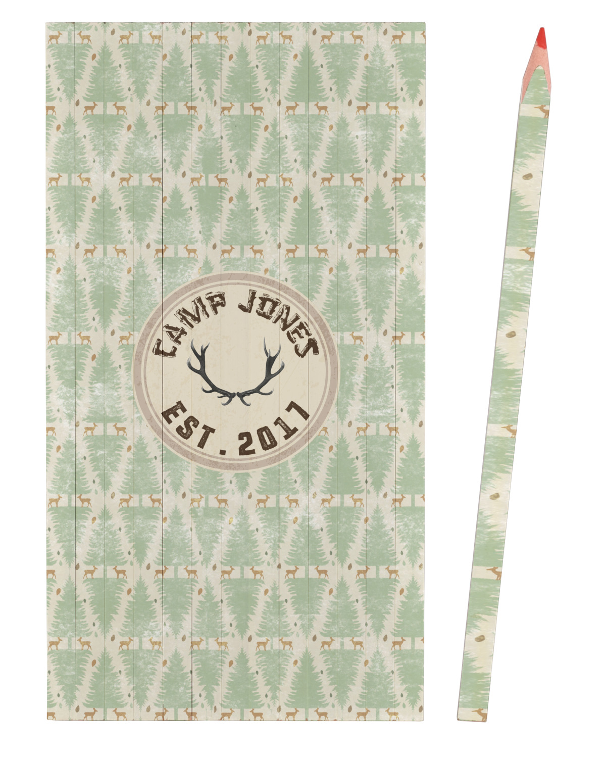 Place the name of your camp in the design or use the saying to let a loved one know that you are "fawnd" of them. Whether for a friend's lodge or for your own, this design really brightens any kind of rustic interior.