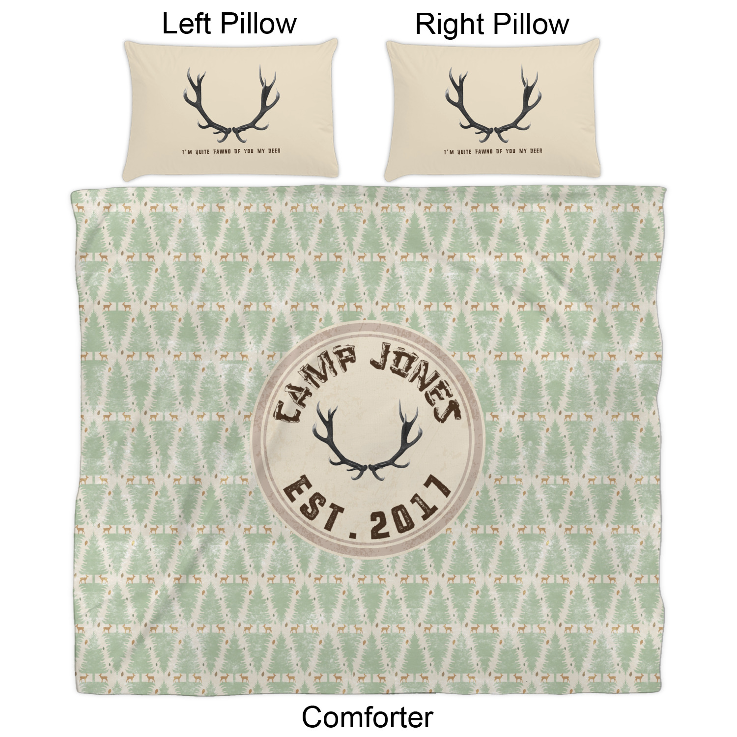 We have hundreds of different design templates for you to choose from Each design can be customized to your exact specifications. Not only can you customize the comforter, but you can also customize each pillow sham e.g. for a queen comforter set you have have Mr & Mrs pillow shams with the last name on comforter.