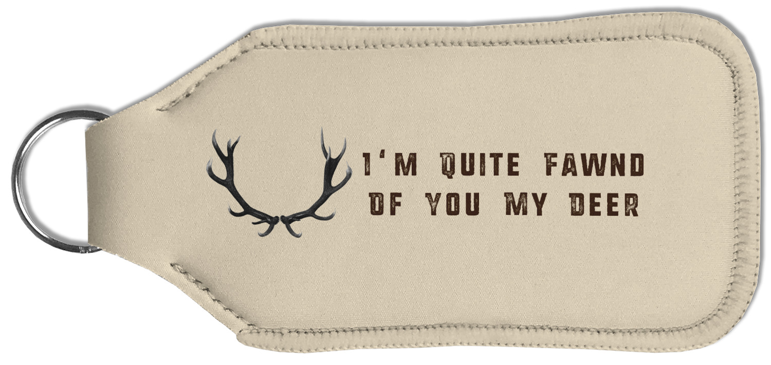 Each hand sanitizer holder comes with its own empty travel-sized, refillable hand sanitizer sure to fit snug in your customized sanitizer case! Our hand sanitizer cases are a durable, yet soft neoprene material sure to last any daily activities or travel agenda. Customize and personalize a hand sanitizer bottle holder with one of our two sizes - small (4.25" x 2.25") or large (5.5" x 2.5"). Each travel sanitizer holder comes with a keyring for attachment on bags, keys, or more!