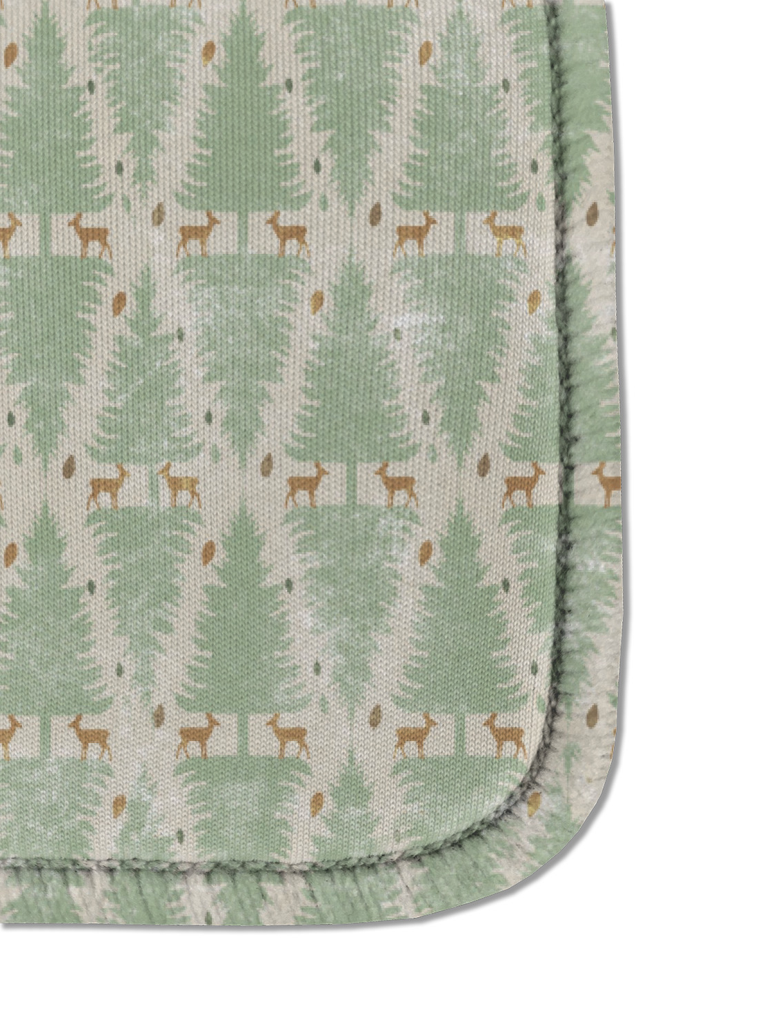 This design has a very calm color palette with toned down greens and tans. On the main pattern you will find adorable little deer in between rows of pines.