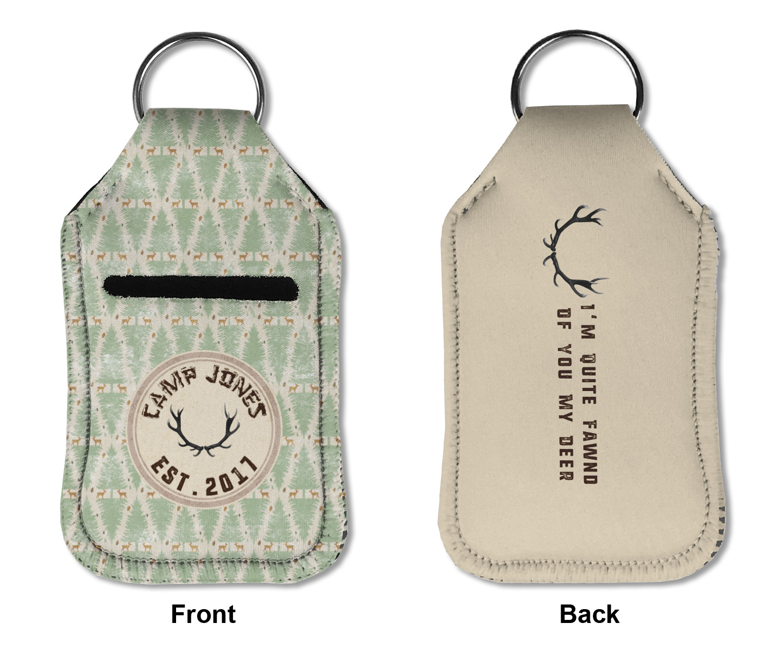 Each hand sanitizer holder comes with its own empty travel-sized, refillable hand sanitizer sure to fit snug in your customized sanitizer case! Our hand sanitizer cases are a durable, yet soft neoprene material sure to last any daily activities or travel agenda. Customize and personalize a hand sanitizer bottle holder with one of our two sizes - small (4.25" x 2.25") or large (5.5" x 2.5"). Each travel sanitizer holder comes with a keyring for attachment on bags, keys, or more!
