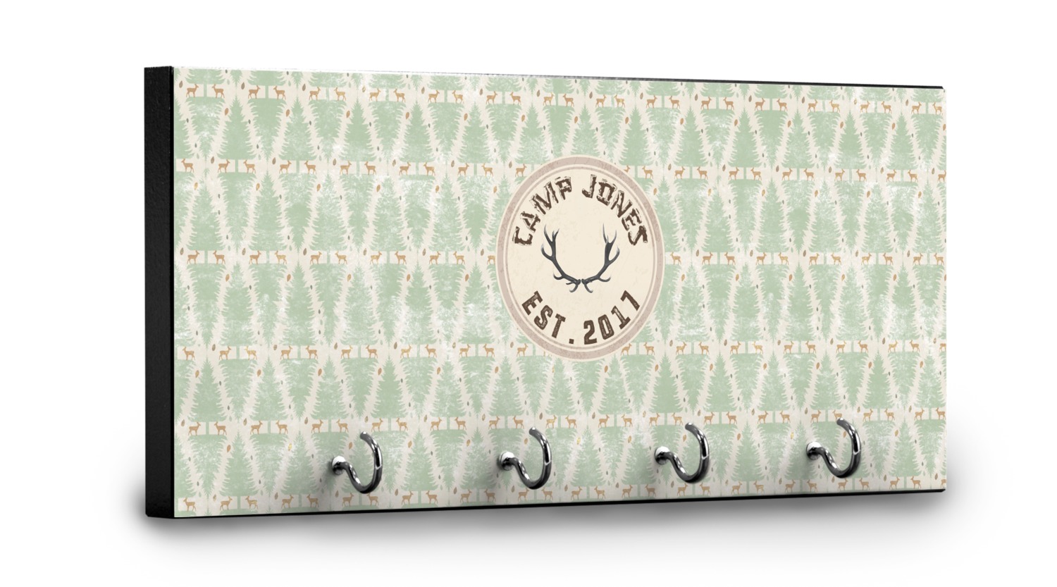 This 11" x 5" key hanger is made of sturdy wood and has four metal hooks lining the bottom. This is the perfect size for a family with several drivers. Not only can you hang keys on it though, but pet leashes and other small items. The board is black on the sides and back and is printed with the design of your choice on the front.