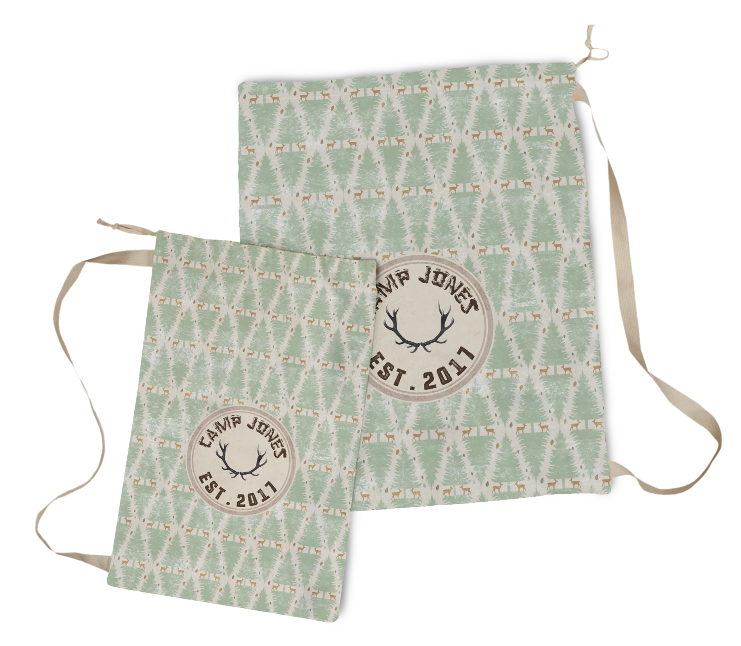 This design has a very calm color palette with toned down greens and tans. On the main pattern you will find adorable little deer in between rows of pines.