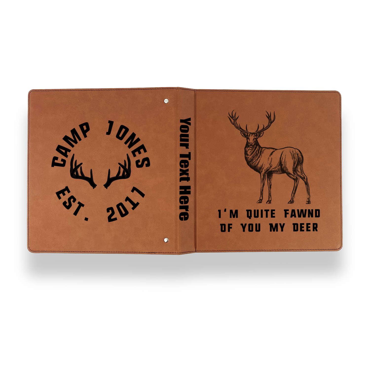 Place the name of your camp in the design or use the saying to let a loved one know that you are "fawnd" of them. Whether for a friend's lodge or for your own, this design really brightens any kind of rustic interior.
