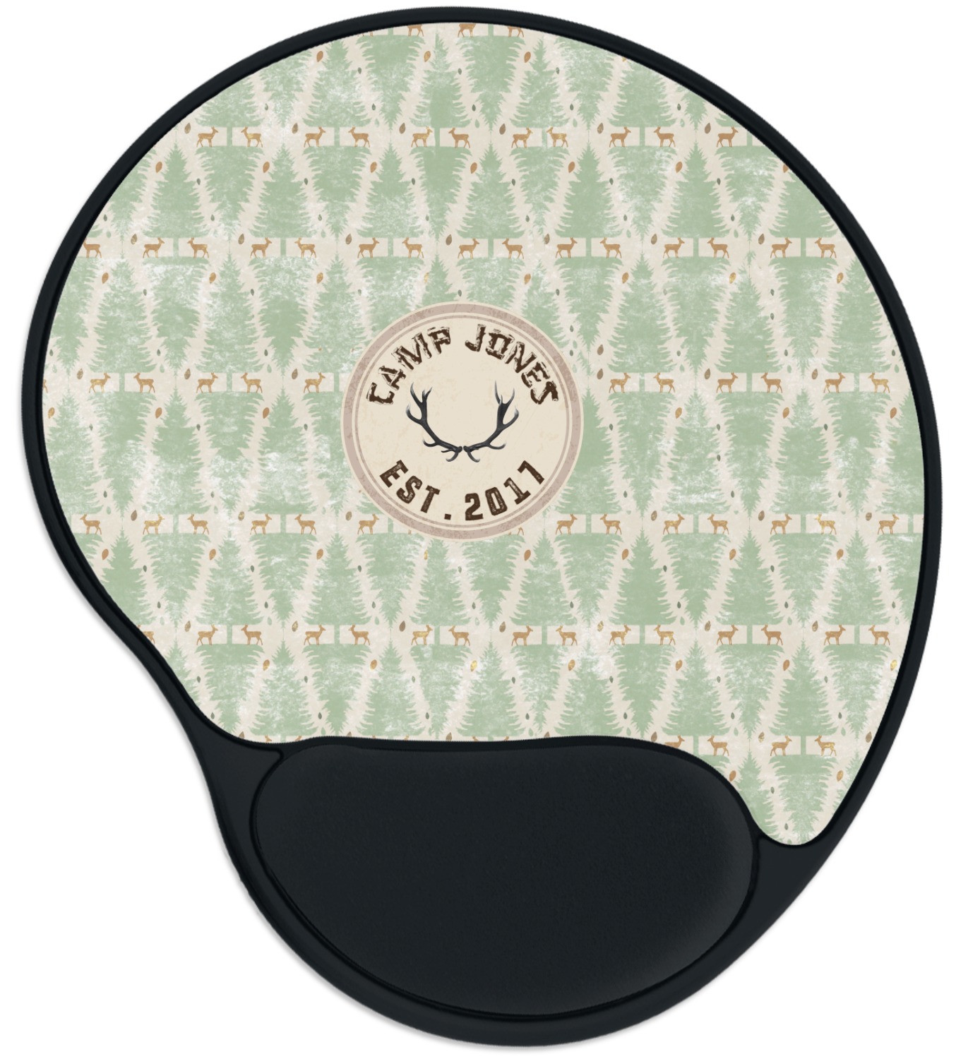 The top of these personalized mouse pads are made from a polyester, while the underside is plastic. The back of these mouse mats include rubber feet to prevent any slippage while in use. A padded wrist support, made from plush memory foam, occupies the bottom section of these computer mouse pads. Your customized design is printed onto the face of this mat, with the remaining sides and support piece colored in black. The mat itself is rounded and measures at 10.25" x 9.13".