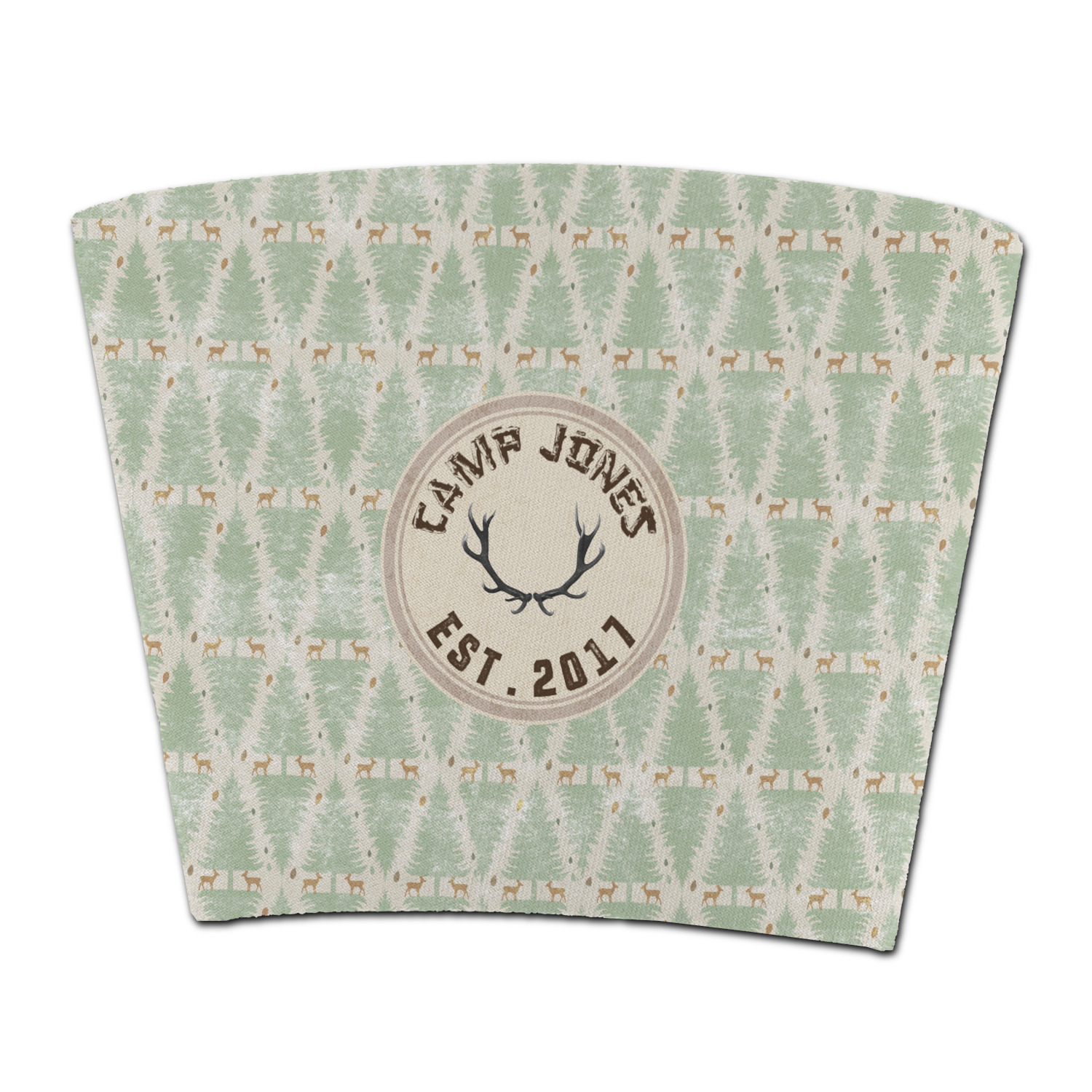 This design has a very calm color palette with toned down greens and tans. On the main pattern you will find adorable little deer in between rows of pines.