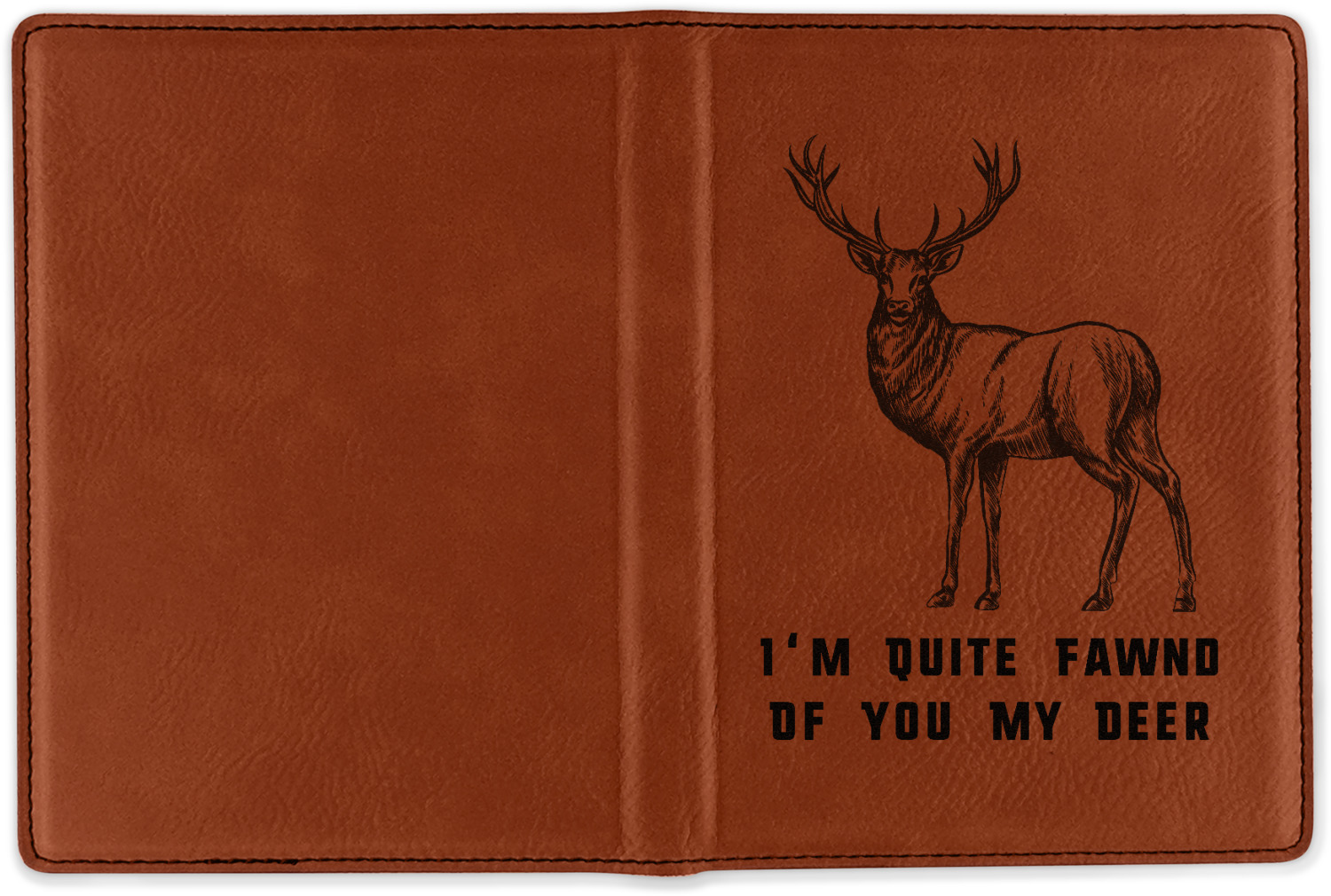 Although they are faux leather, these passport holders feel great in your hand. They are laser engraved either just on the front or the front and back. The image that is engraved onto your passport holder will be shades of black.