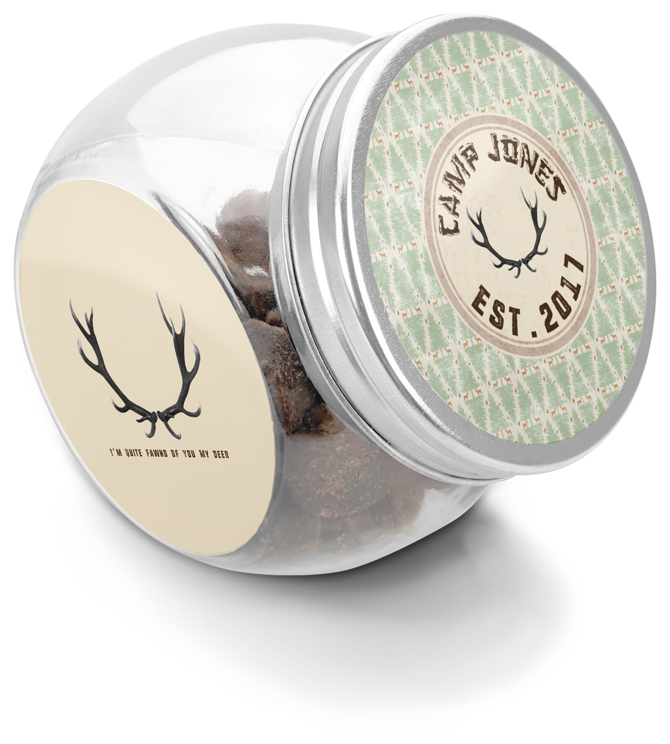 Pleased with your customized design? Perhaps purchase a matching dog food bowl, dog food mat, or even another, larger dog treat jar! Check out our Pet Accessories Department for even more gift options for your puppy.