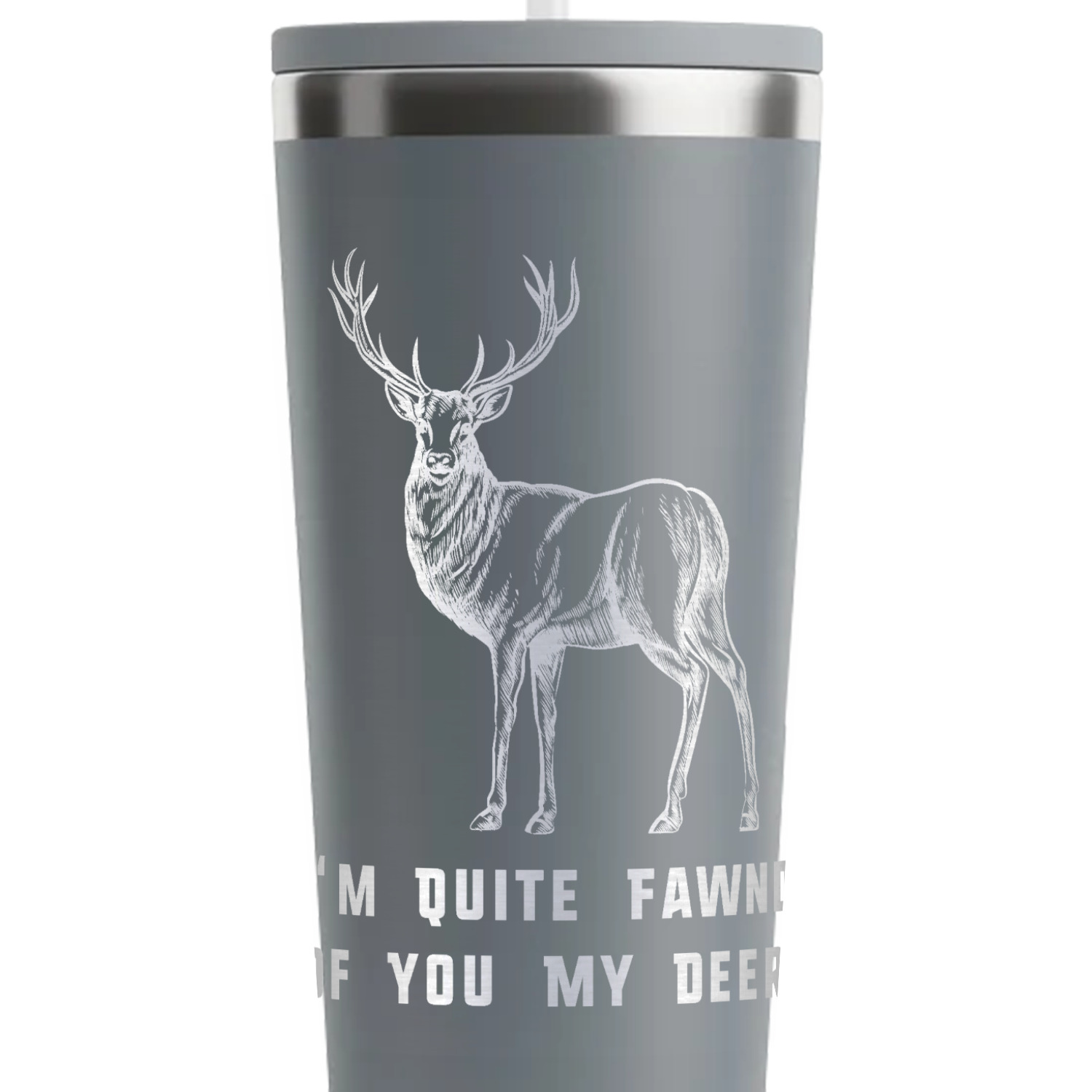 Place the name of your camp in the design or use the saying to let a loved one know that you are "fawnd" of them. Whether for a friend's lodge or for your own, this design really brightens any kind of rustic interior.