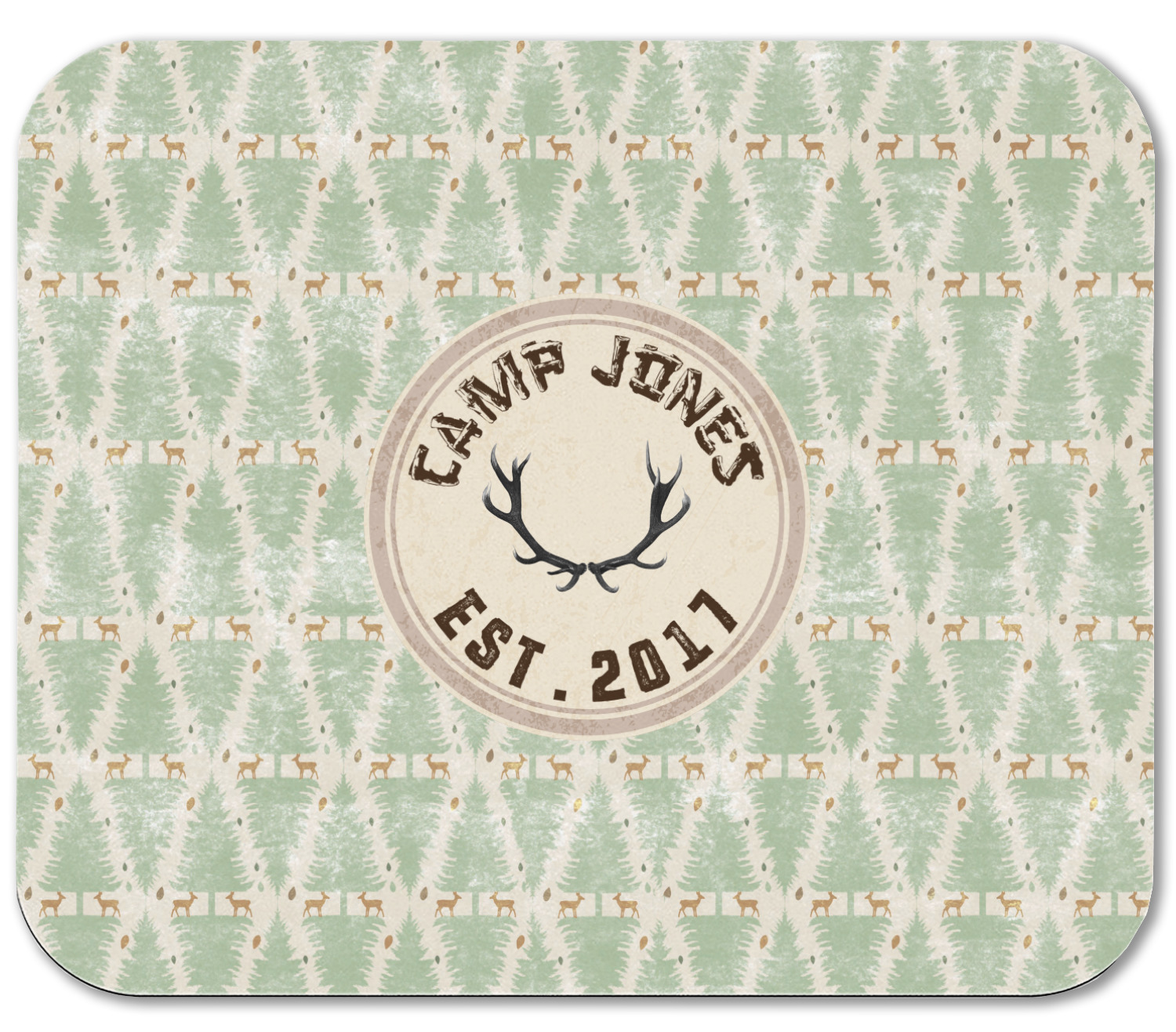 This design has a very calm color palette with toned down greens and tans. On the main pattern you will find adorable little deer in between rows of pines.