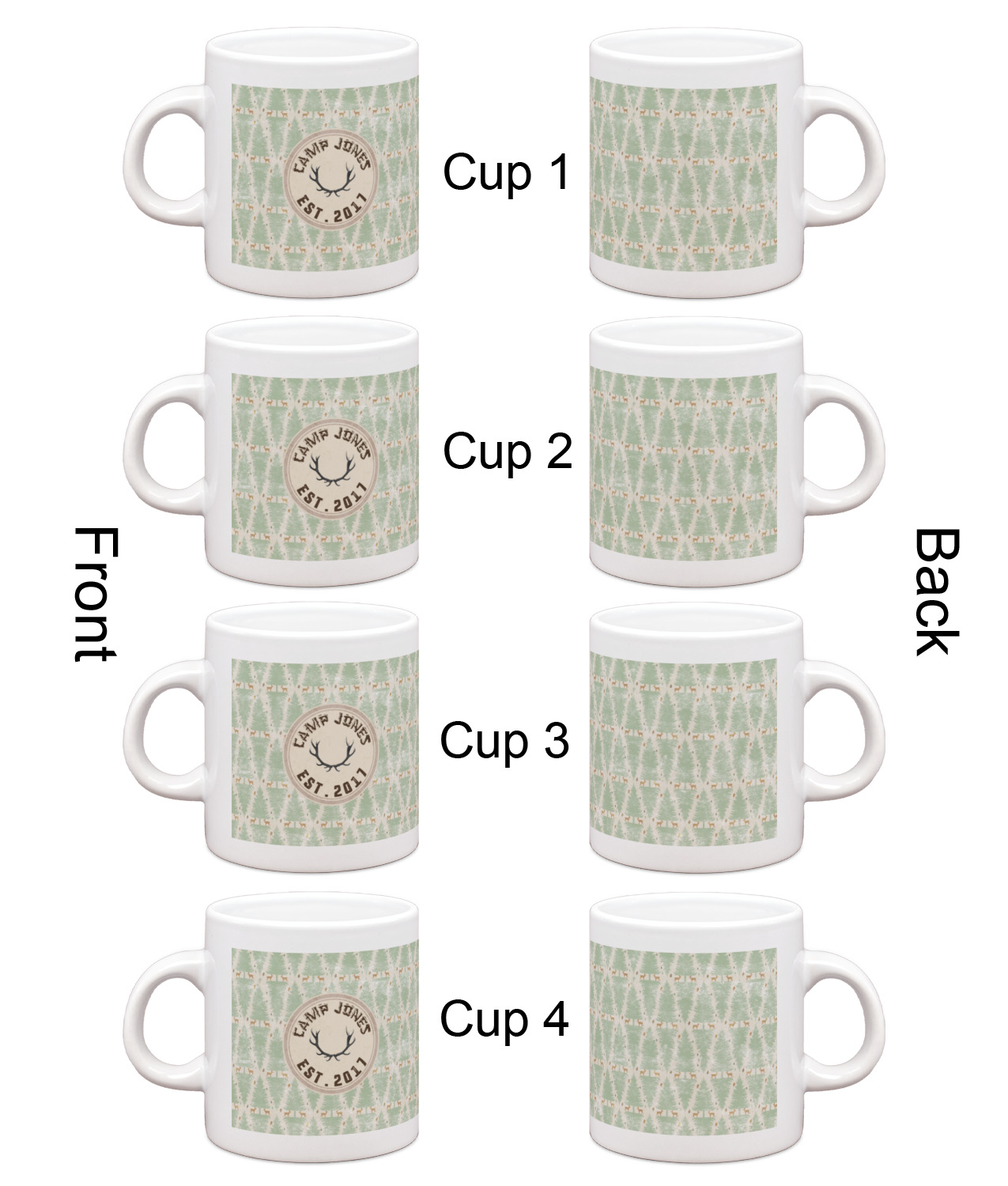 Each of our espresso mugs is a ceramic material sure to keep your drink warm. Personalize one cup for yourself, or order a set of 4! Its the perfect little gift for any coffee lover! We carry two sizes for you to personalize - 3 oz. (approx. 3.25" x 2.325" x 2.625") or 6 oz. (approx. 4" x 2.9" x 2.9"). Our 3 oz. mug is perfect for that single shot espresso while our 6 oz. mug can be your next favorite cappuccino cup holding two shots of espresso!