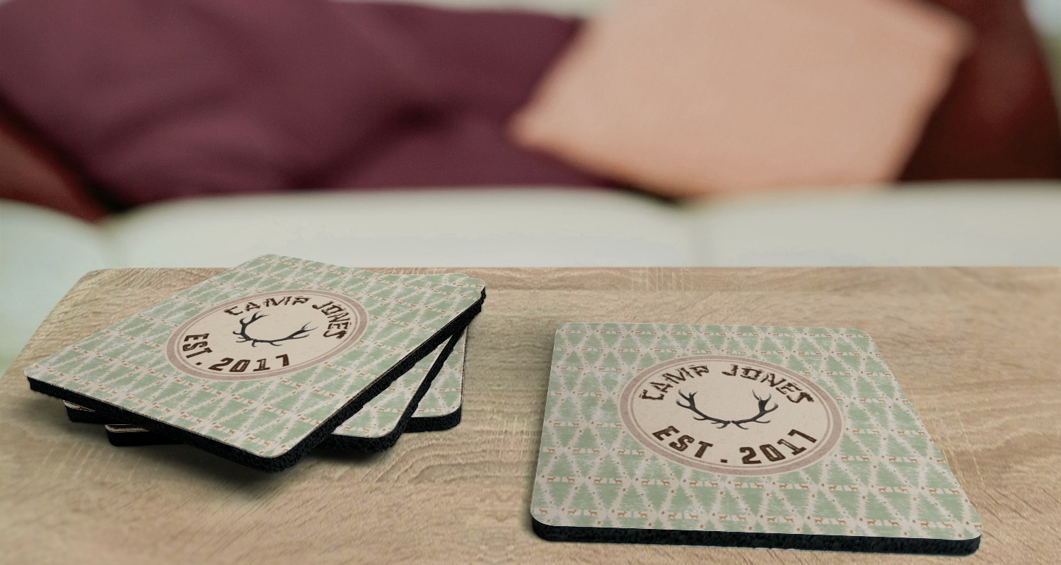 These drink coasters have a smooth, polyester top and a textured, rubber backing on its bottom. The non-slip rubber backing underneath works to keep any spills at bay. At 4 by 4 by 0.25 inches thick, these custom coasters are a suitable size for most drinkware. Your personalization is displayed atop the face of the cup coaster. We sell these rubber coasters in two different shapes: square and round. You can buy each shape as singulars or as a set of 4.