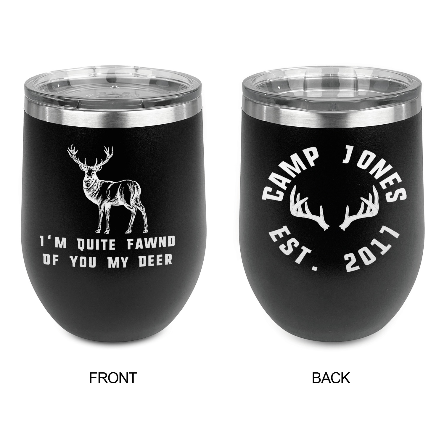 Design your wine tumbler with a cool graphic or quote. Even put your initials or monogram! These cups are laser engraved, which looks extra sharp on the metal tumbler.