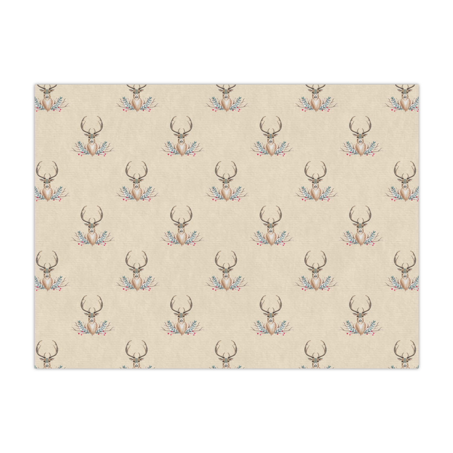 This design has a very calm color palette with toned down greens and tans. On the main pattern you will find adorable little deer in between rows of pines.