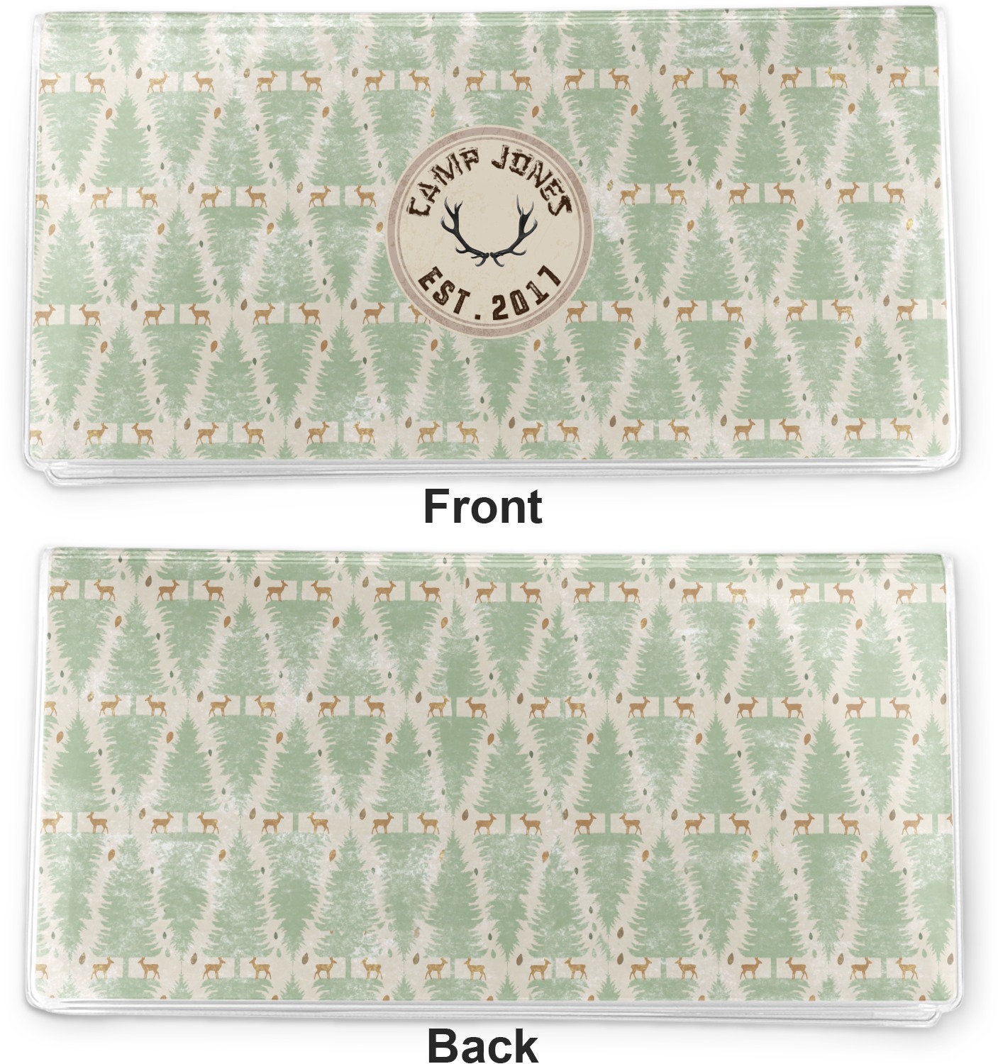 This design has a very calm color palette with toned down greens and tans. On the main pattern you will find adorable little deer in between rows of pines.