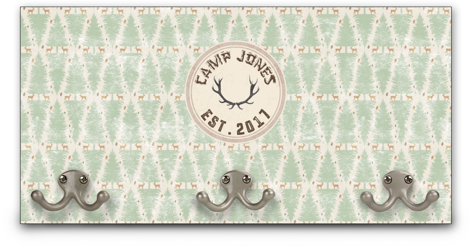This coat rack is the perfect way to add some personality to your wall or entryway. The board is made of a strong maple that is approximately 16" x 8". The three 2-prong hooks are a sturdy metal that have three screws attaching them to the board. Your design is printed right onto the front of the board while the back and sides are a simple black.