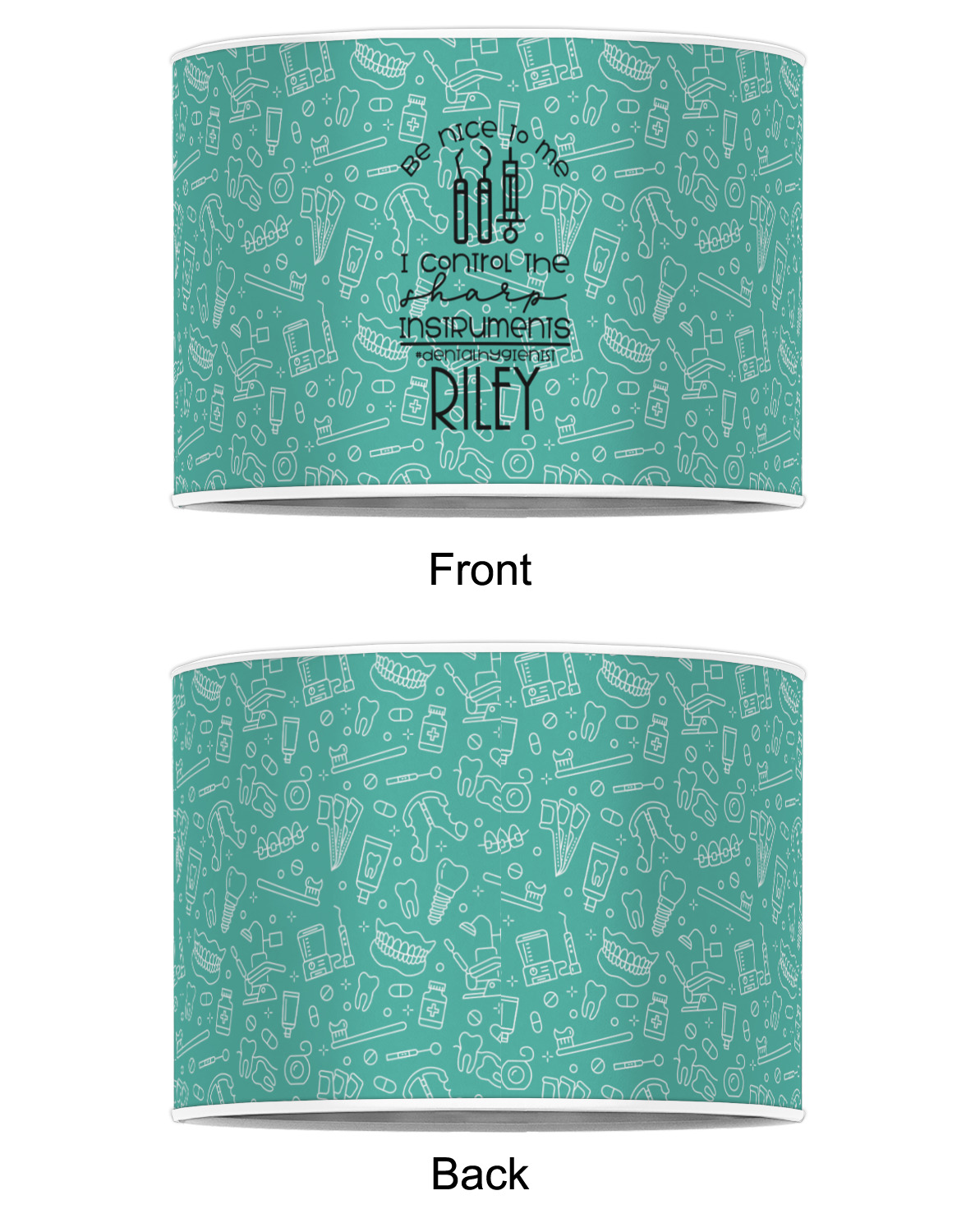 We choose a scrubs green background with line drawings of dental instruments in white. Both colors can be customized. We also have other dental themed backgrounds and hundreds of fun patterns that can easily be swapped out.