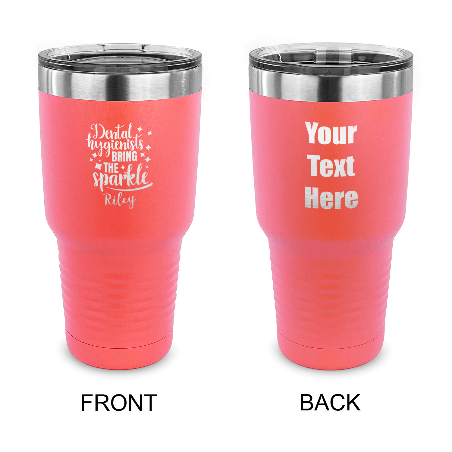 With the 5 colors - Black, Navy, Red, Pink and Coral, you are sure to find a cup to fit your personality. You can chose to engrave on the front or the front and back of the cup. Use our design studio to design your own cup and we laser engrave it for you.
