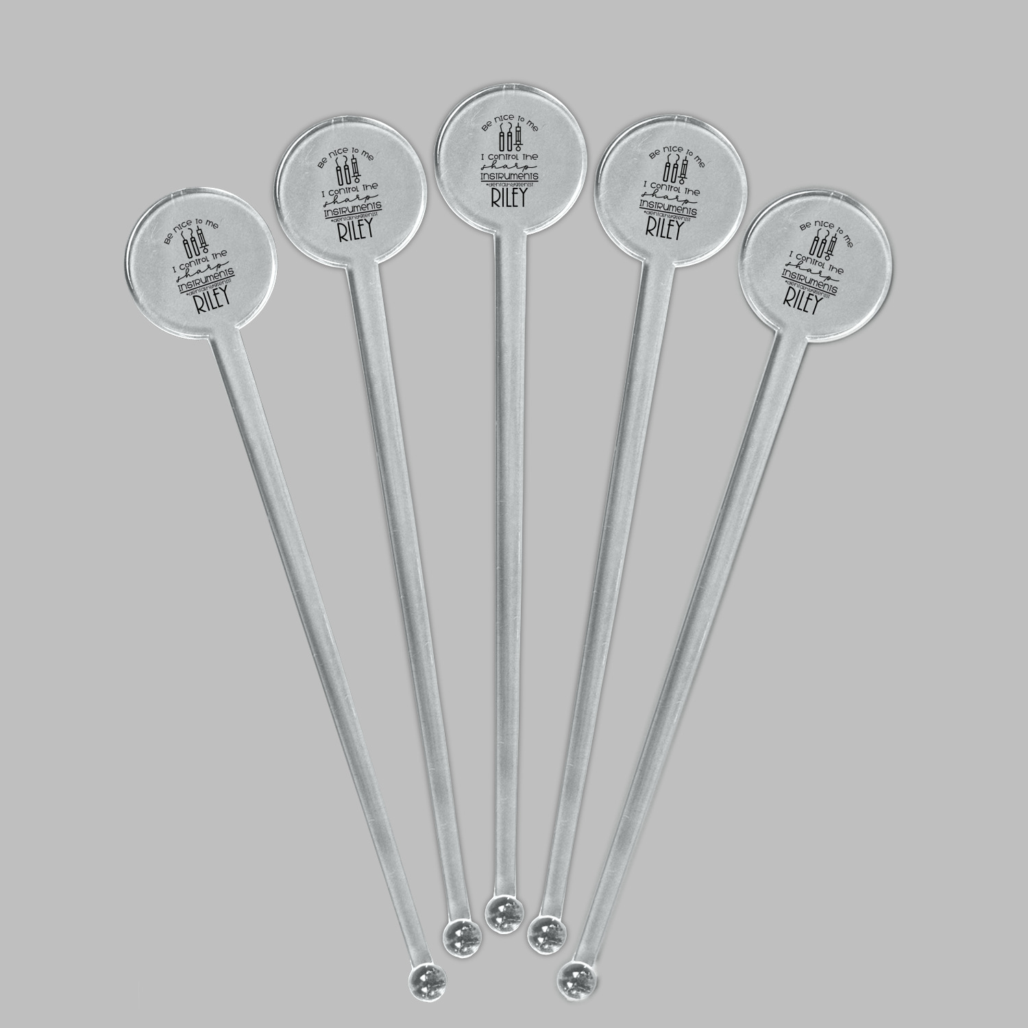 For the foreground, we used a fun quote that says "Be nice to me, I control sharp instruments #dental hygienist"Dental Hygienists bring the sparkle". We chose to personalize it with a name underneath. We used black for our color. You can customize the graphics, the colors as well as the personalization. Enjoy customizing it to make it yours.