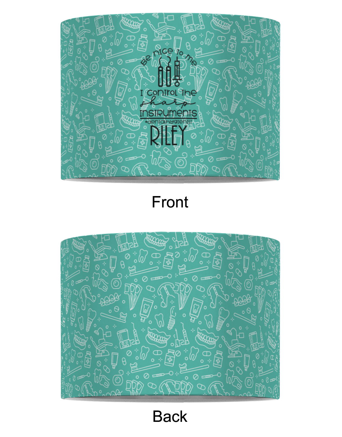 We choose a scrubs green background with line drawings of dental instruments in white. Both colors can be customized. We also have other dental themed backgrounds and hundreds of fun patterns that can easily be swapped out.