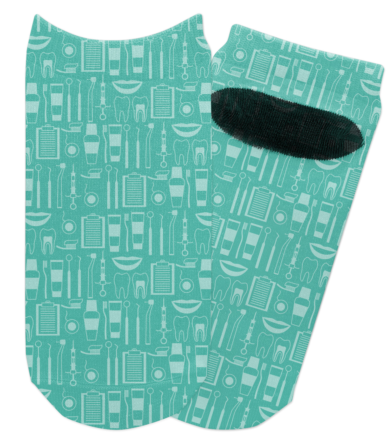 We choose a scrubs green background with line drawings of dental instruments in white. Both colors can be customized. We also have other dental themed backgrounds and hundreds of fun patterns that can easily be swapped out.