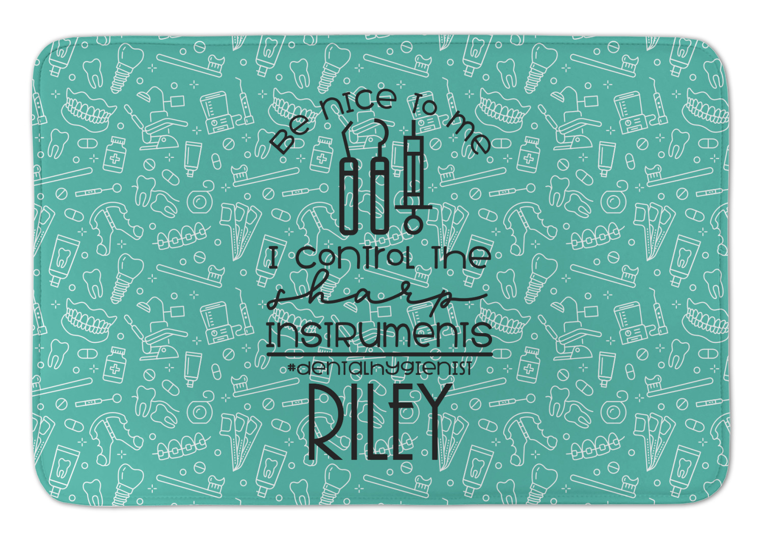 For the foreground, we used a fun quote that says "Be nice to me, I control sharp instruments #dental hygienist"Dental Hygienists bring the sparkle". We chose to personalize it with a name underneath. We used black for our color. You can customize the graphics, the colors as well as the personalization. Enjoy customizing it to make it yours.