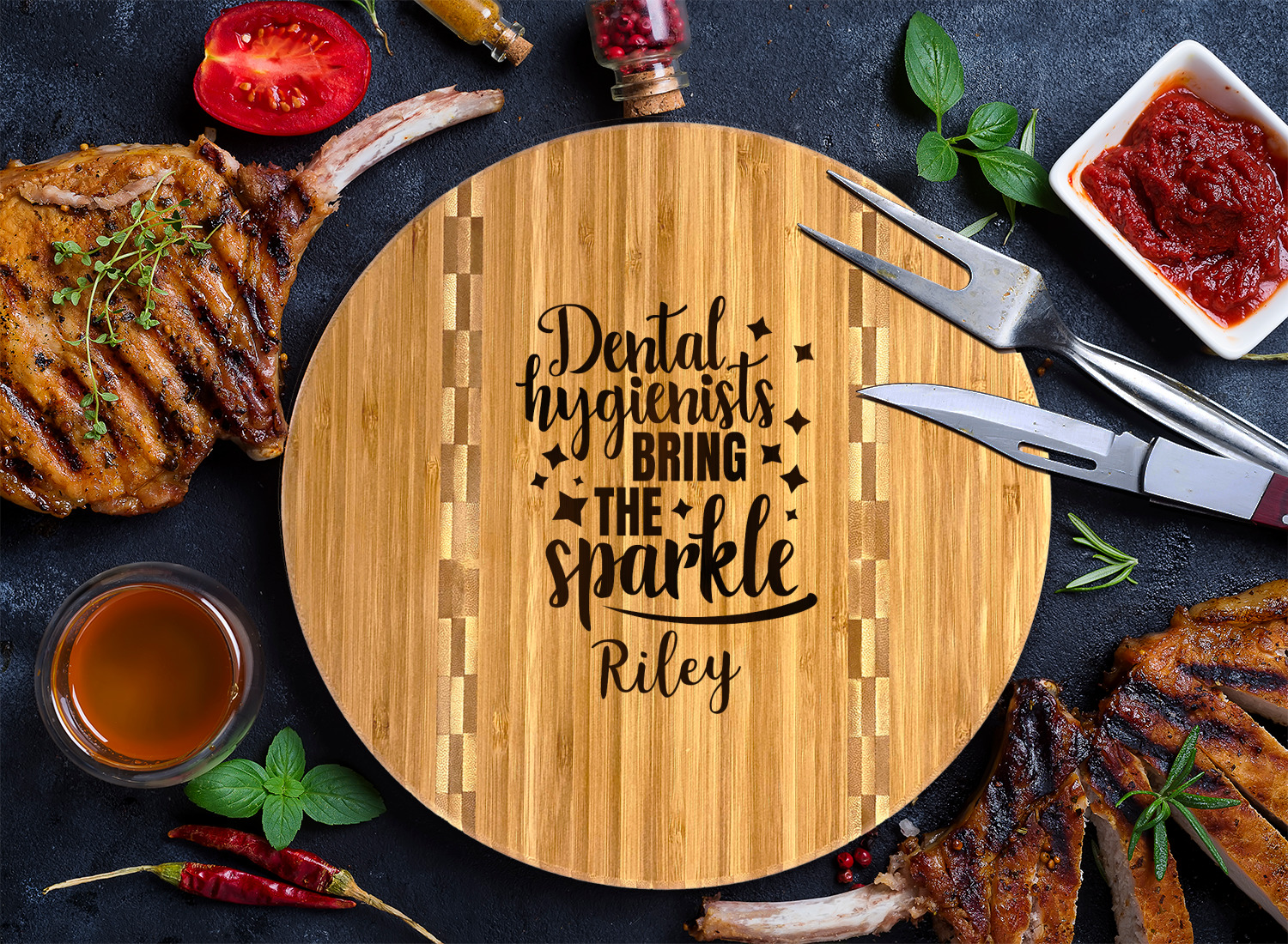 With the laser engraving the cutting board can be customized for that special personal touch. Great for cutting, chopping and dicing - this butcher block is a do it all kitchen tool anyone would love to have. The 11.5" diameter makes it a great size for cutting meats, cheese, fruits and vegetables. A quick hand wash and it is ready to use again.