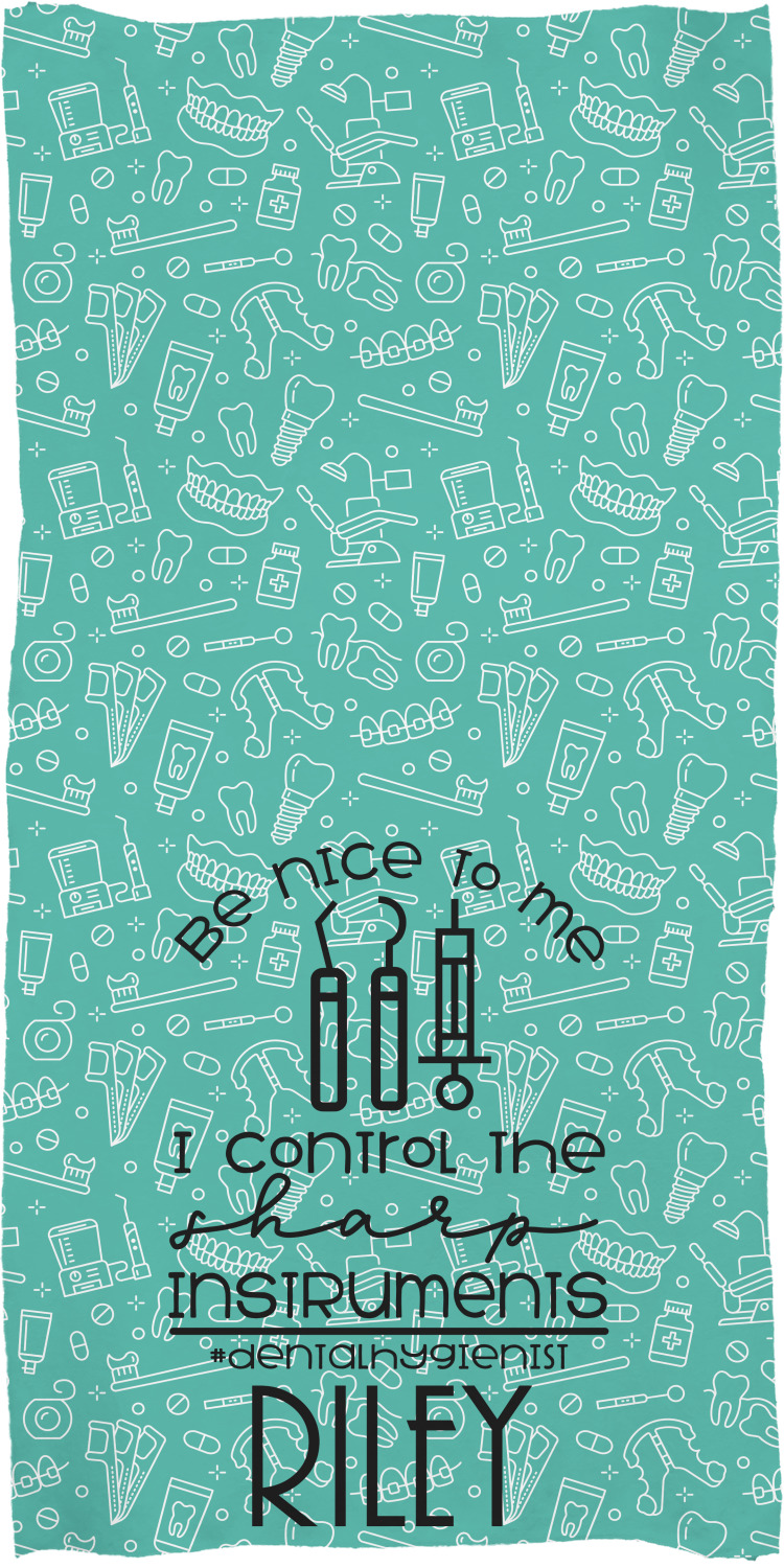 We choose a scrubs green background with line drawings of dental instruments in white. Both colors can be customized. We also have other dental themed backgrounds and hundreds of fun patterns that can easily be swapped out.