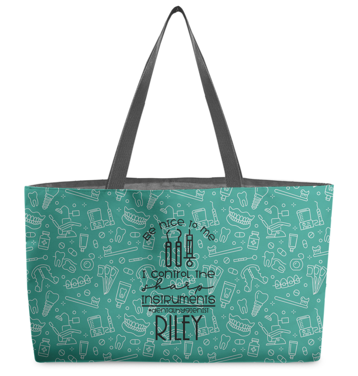 For the foreground, we used a fun quote that says "Be nice to me, I control sharp instruments #dental hygienist"Dental Hygienists bring the sparkle". We chose to personalize it with a name underneath. We used black for our color. You can customize the graphics, the colors as well as the personalization. Enjoy customizing it to make it yours.