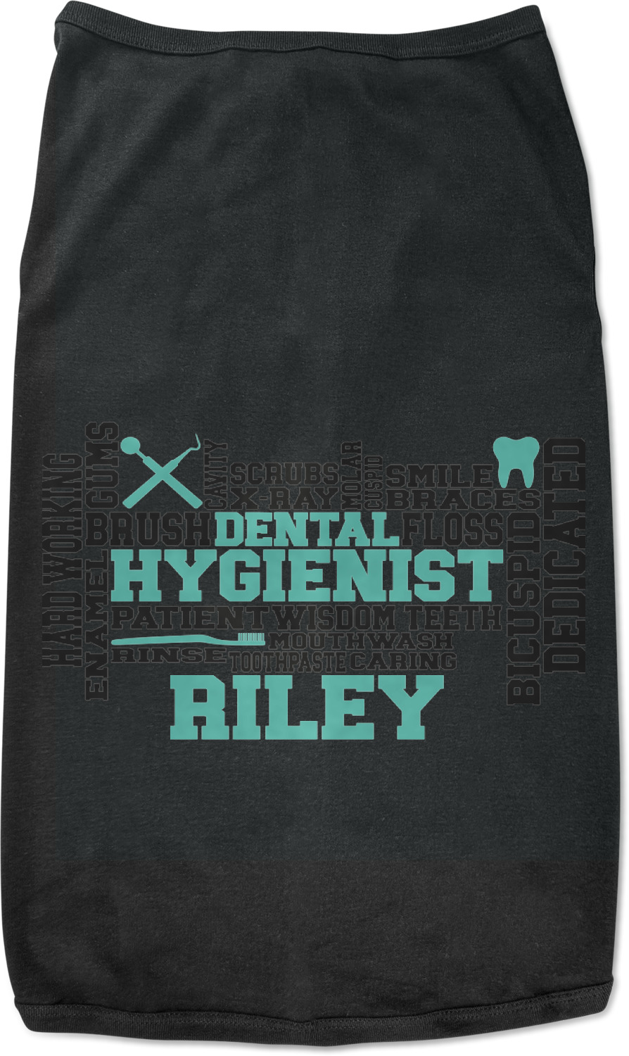 For the foreground, we used a fun quote that says "Be nice to me, I control sharp instruments #dental hygienist"Dental Hygienists bring the sparkle". We chose to personalize it with a name underneath. We used black for our color. You can customize the graphics, the colors as well as the personalization. Enjoy customizing it to make it yours.
