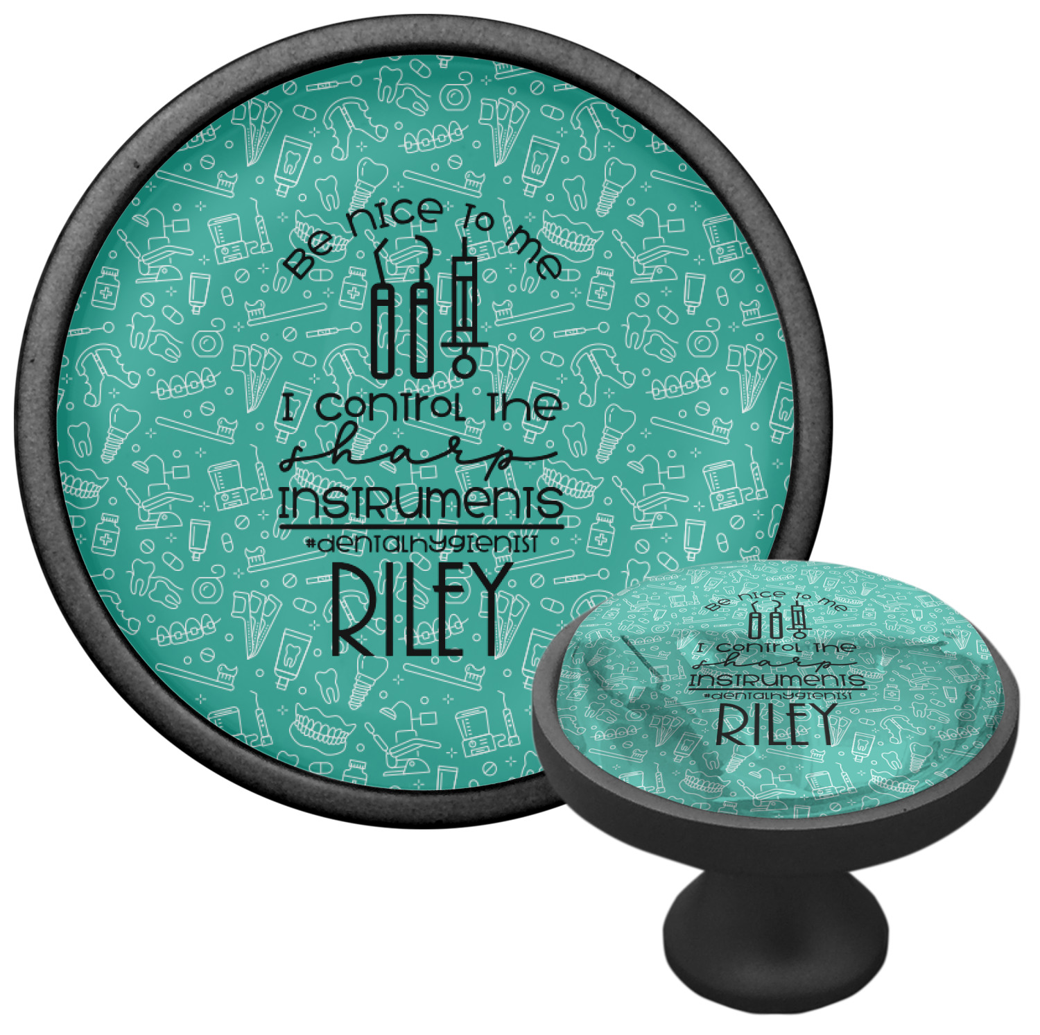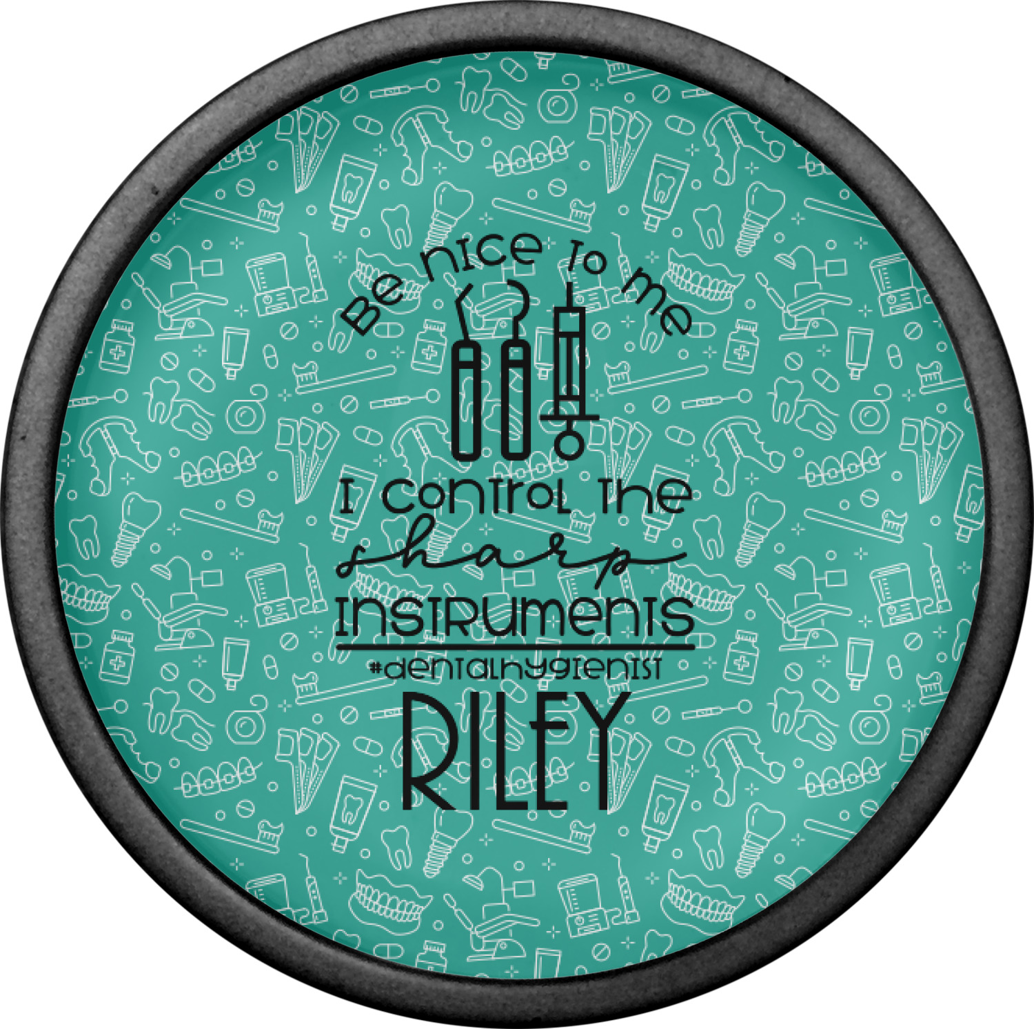 For the foreground, we used a fun quote that says "Be nice to me, I control sharp instruments #dental hygienist"Dental Hygienists bring the sparkle". We chose to personalize it with a name underneath. We used black for our color. You can customize the graphics, the colors as well as the personalization. Enjoy customizing it to make it yours.