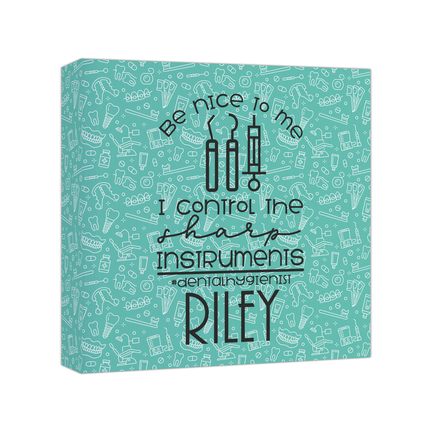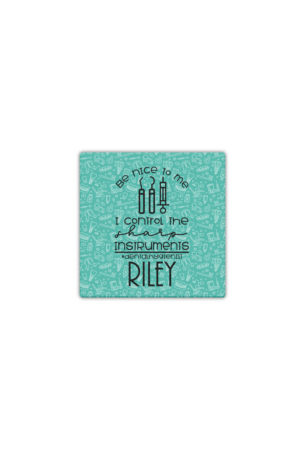For the foreground, we used a fun quote that says "Be nice to me, I control sharp instruments #dental hygienist"Dental Hygienists bring the sparkle". We chose to personalize it with a name underneath. We used black for our color. You can customize the graphics, the colors as well as the personalization. Enjoy customizing it to make it yours.