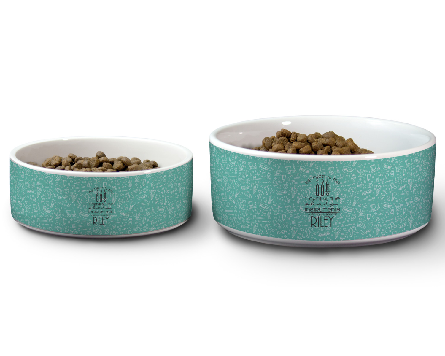 Our customized, ceramic dog bowls allow you to fashion a durable, yet expressive gift for your pet. These bowls are fashionably versatile; they suit both cats and dogs and can hold either food or water. Add your pet's name or favorite color to the design, and spruce up his/her eating area with one or two personalized pet bowls!